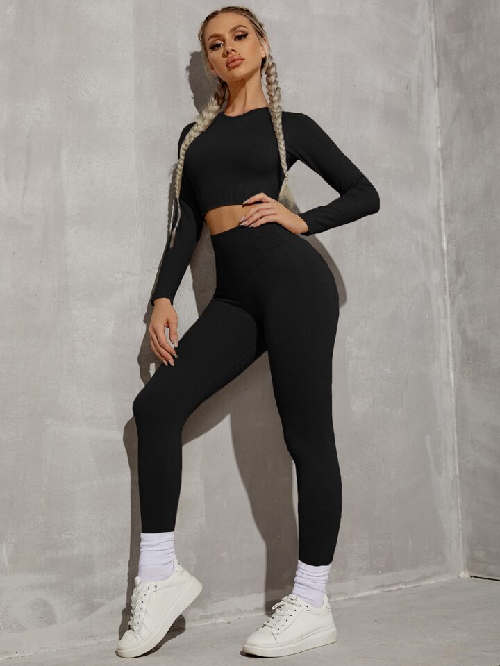 طقم تيشرت رياضي ولباس ضيق قطعتين من نسيج ناعم وملائم