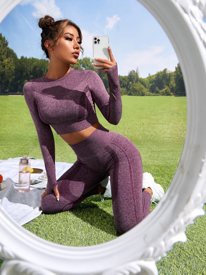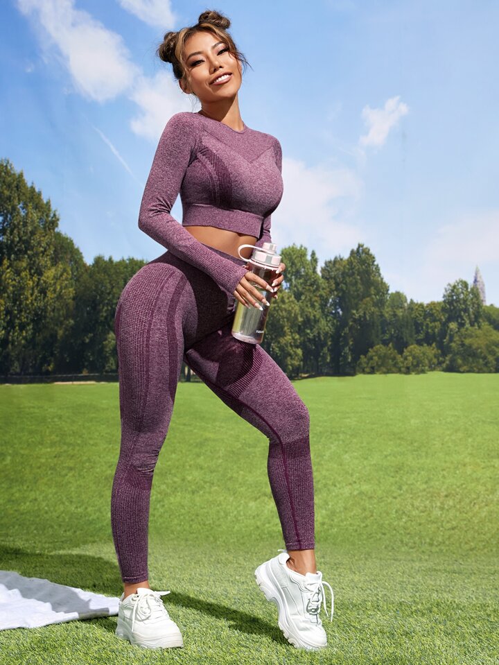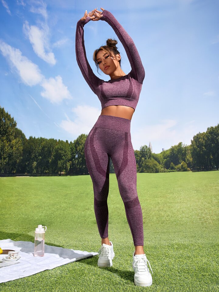 طقم لباس رياضي سلس طباعة مخطط شريط خصر واسع