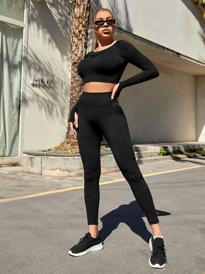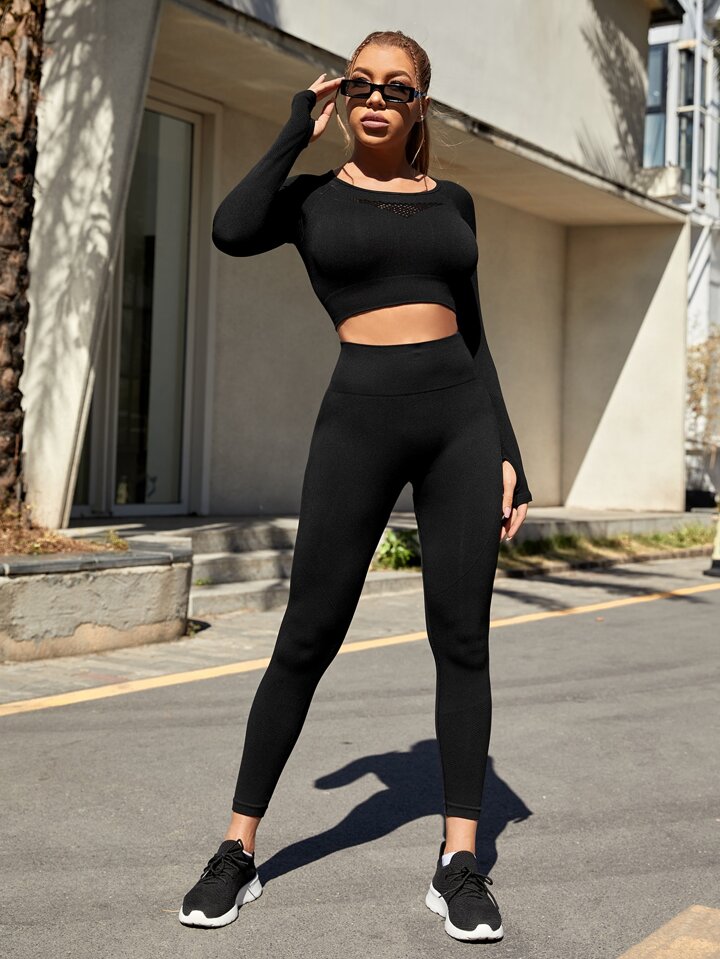 سلس مرونة عالية بقص خلفي تي شيرت رياضي مع طماق