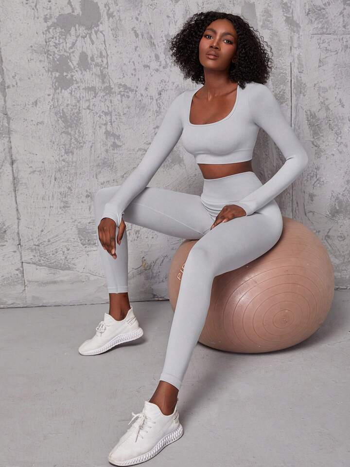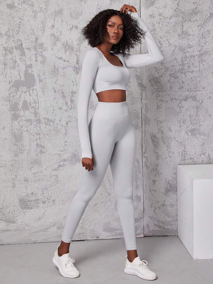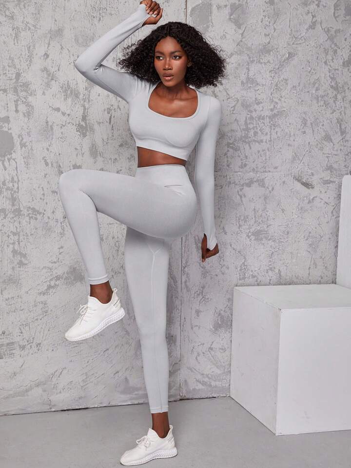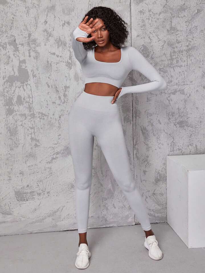طماق مع تي شيرت رياضي عالي المرونة سلس