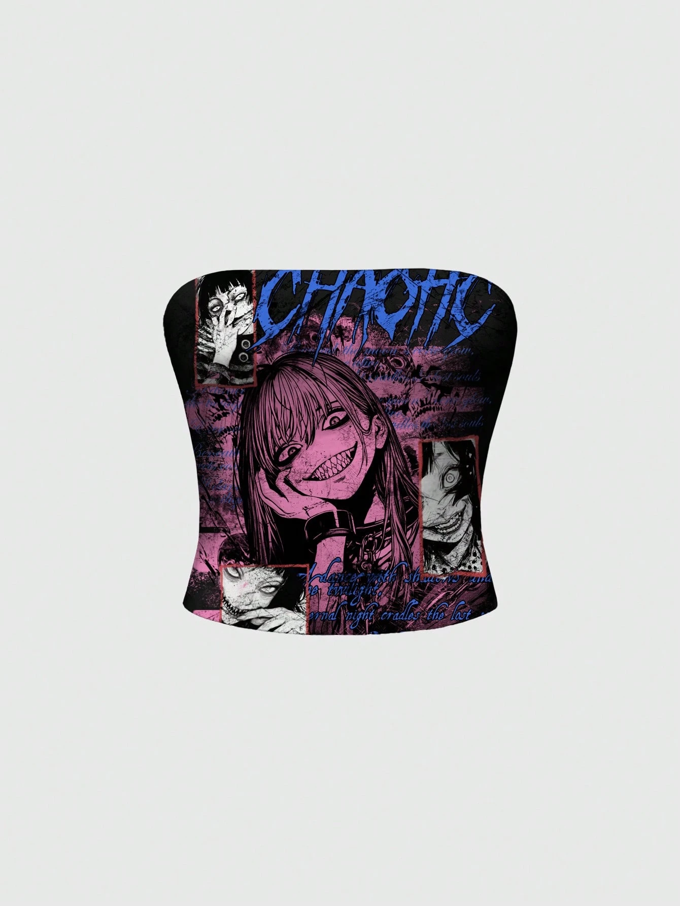 Anime ملابس علوية قصير مطبوع بطبعات دموية ذات طابع جوثي مظلم وأنمي وطراز Y2K للنساء، مناسب للخريف والشتاء