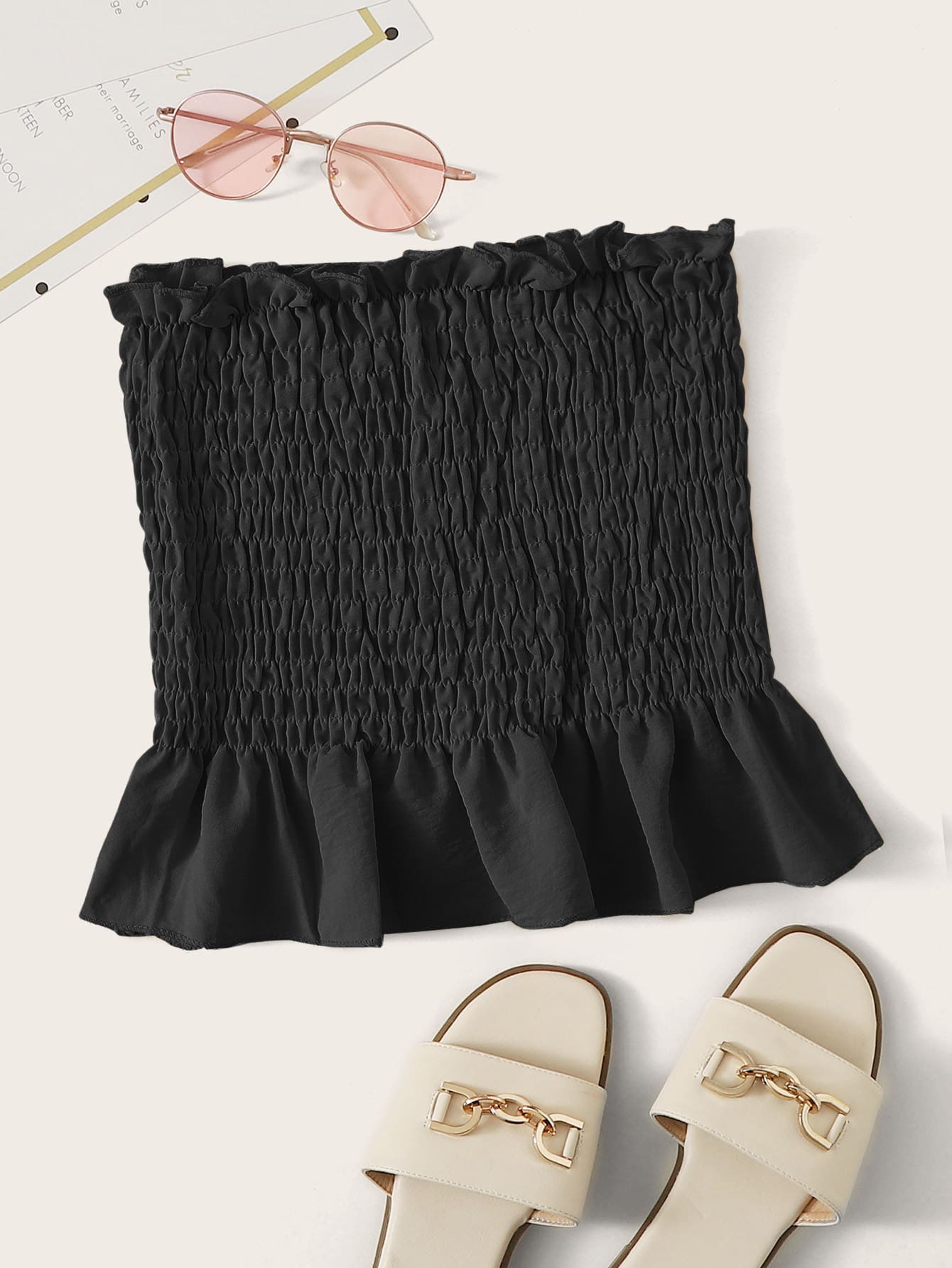 لباس علوي انبوب بحافة مكشكشة ومدرز