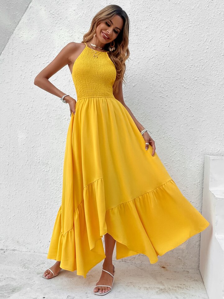 فستان ماكسي سكري بنمط إقتصاد حفل شاطئ للنساء