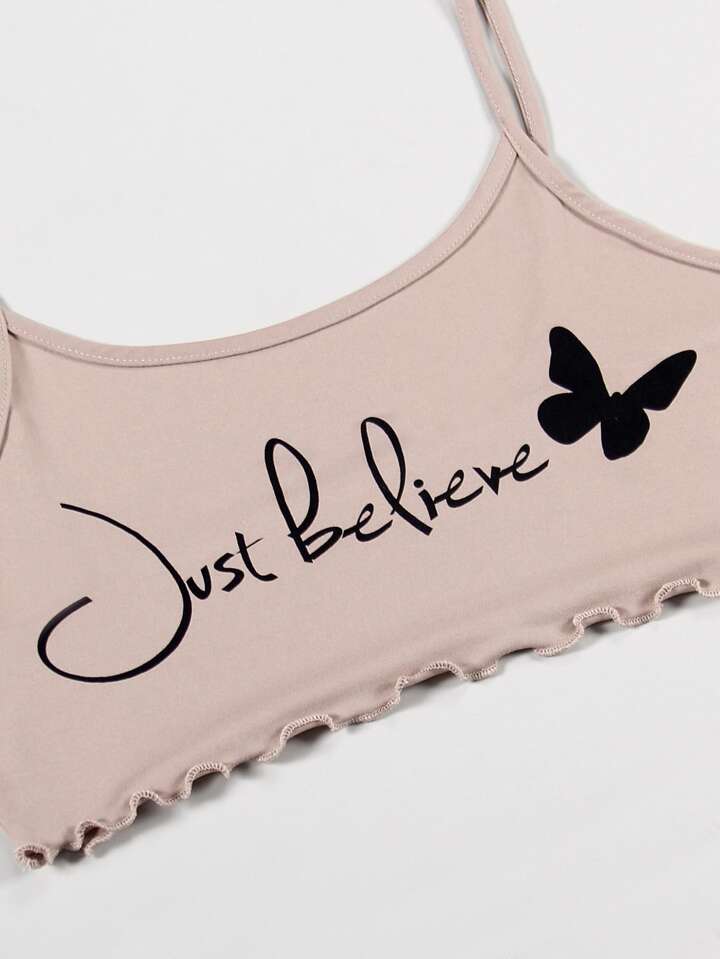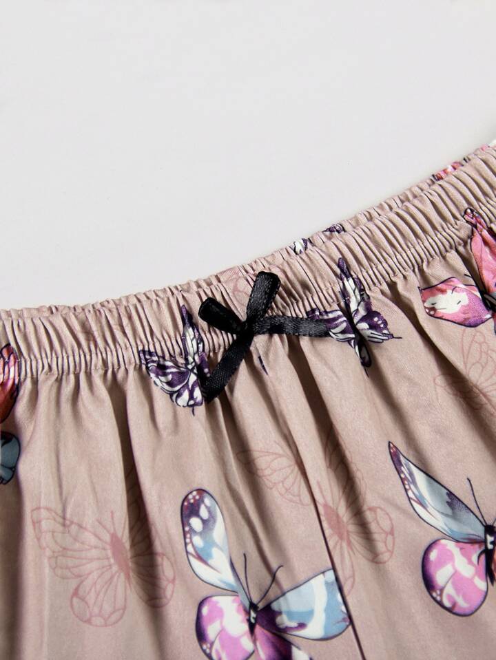 طقم بيجامة كامي مقلم نمط الخس بطباعة فراشة وشعار