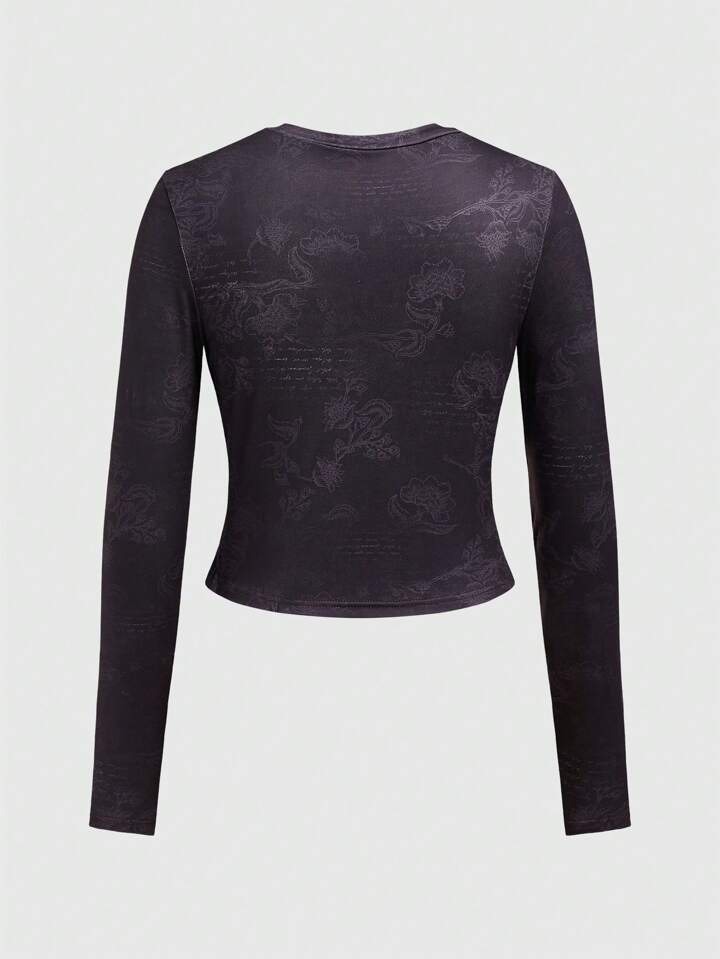 Sweetness تي شيرت نحيف طويل الأكمام بطباعة شعار وزهور