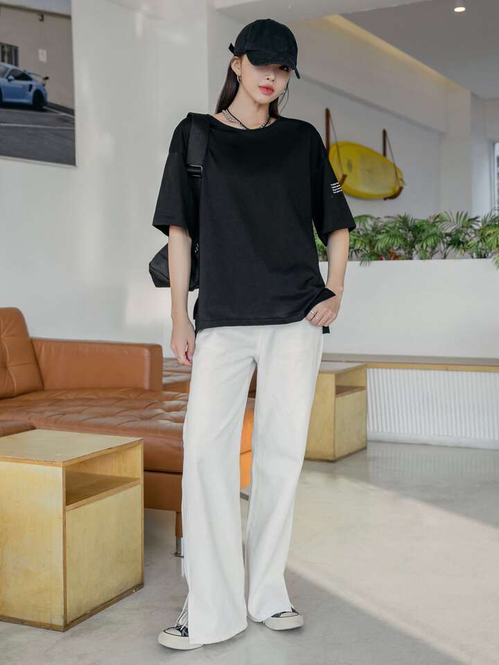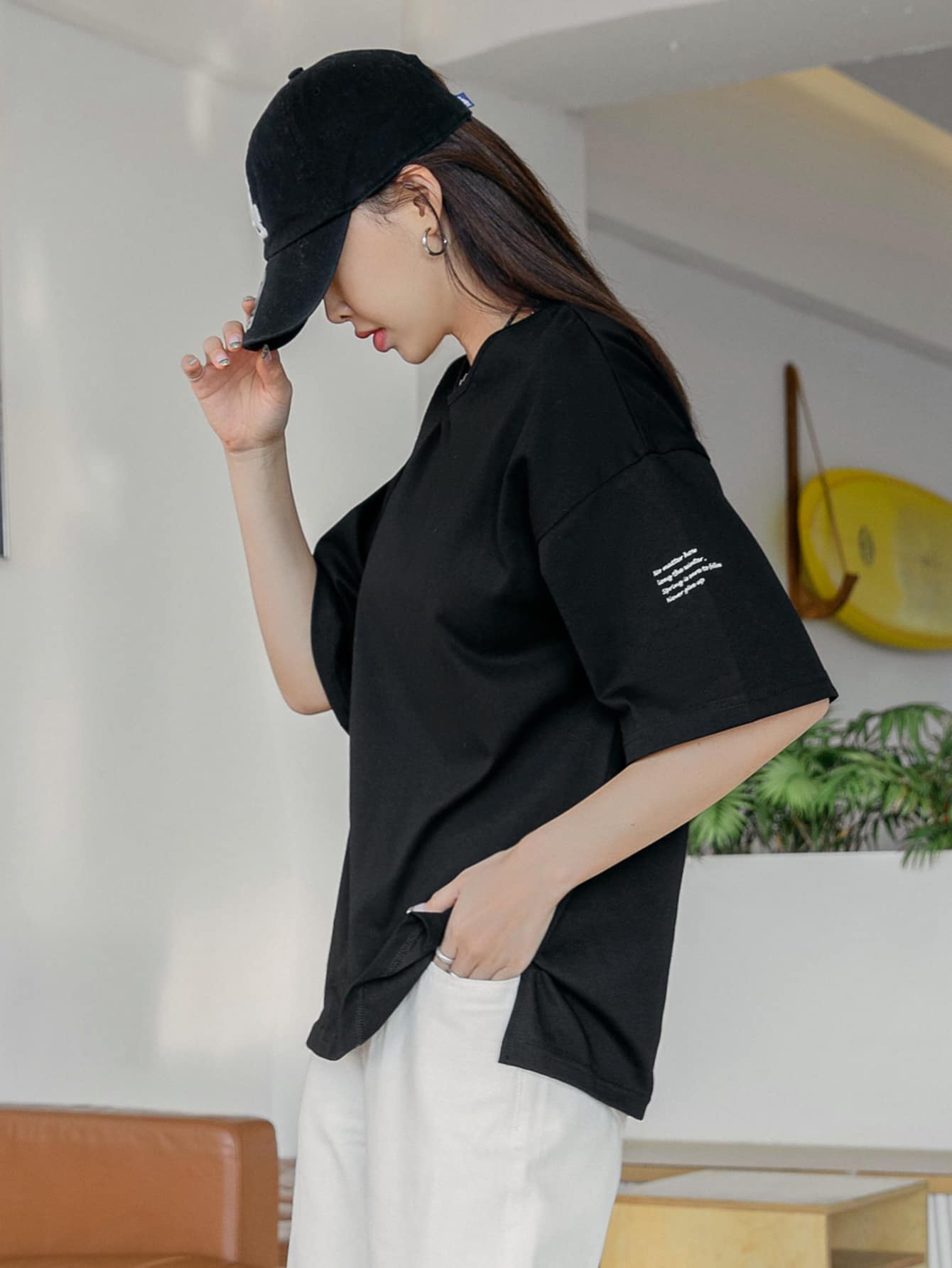 تي شيرت برسوم إعلانية و شعار و ياقة منخفضة