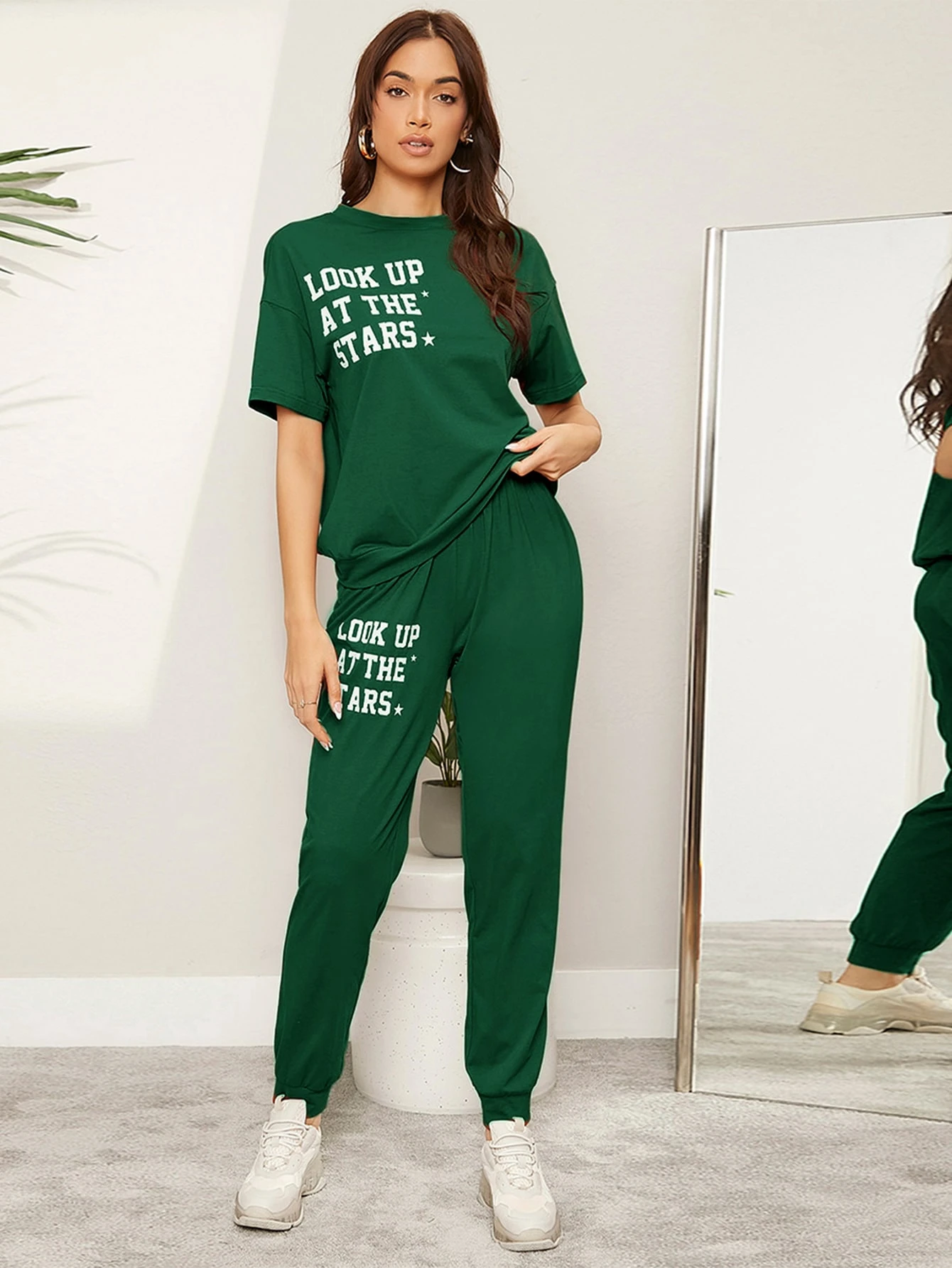 طقم تيشيرت بطباعة شعار وبنطلون رياضي