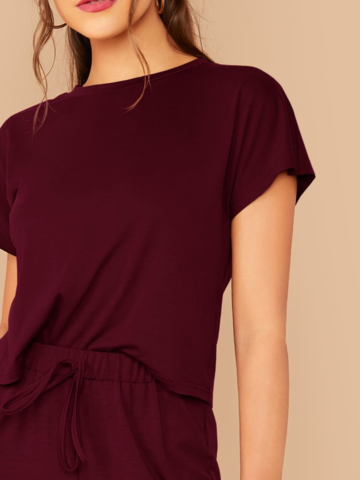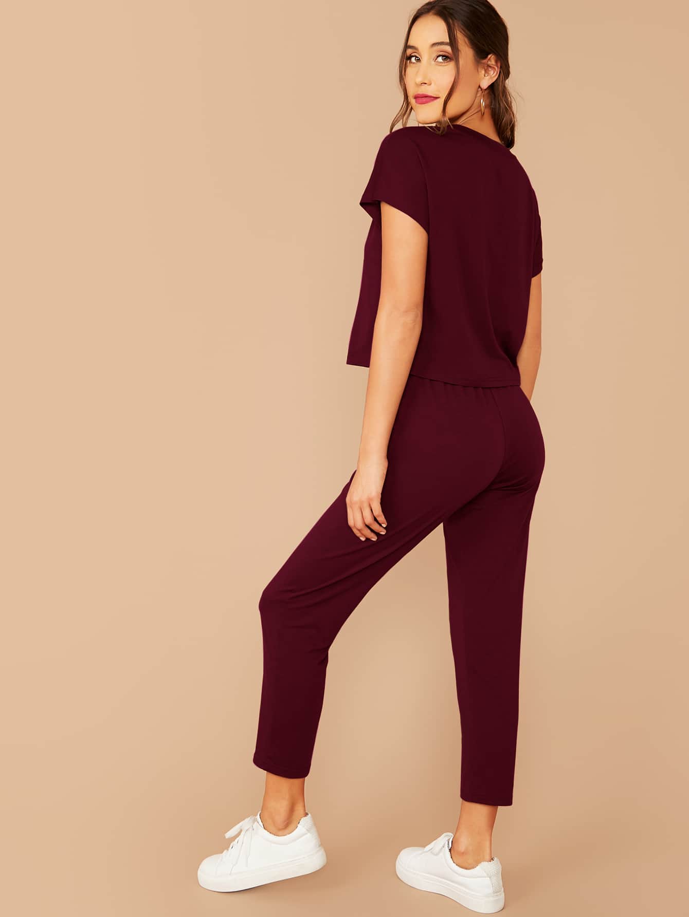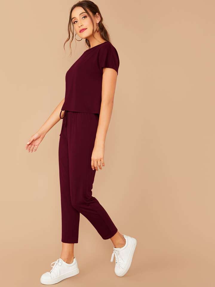 طقم سروال معقود من الامام مع لباس علوي بأكمام قصير