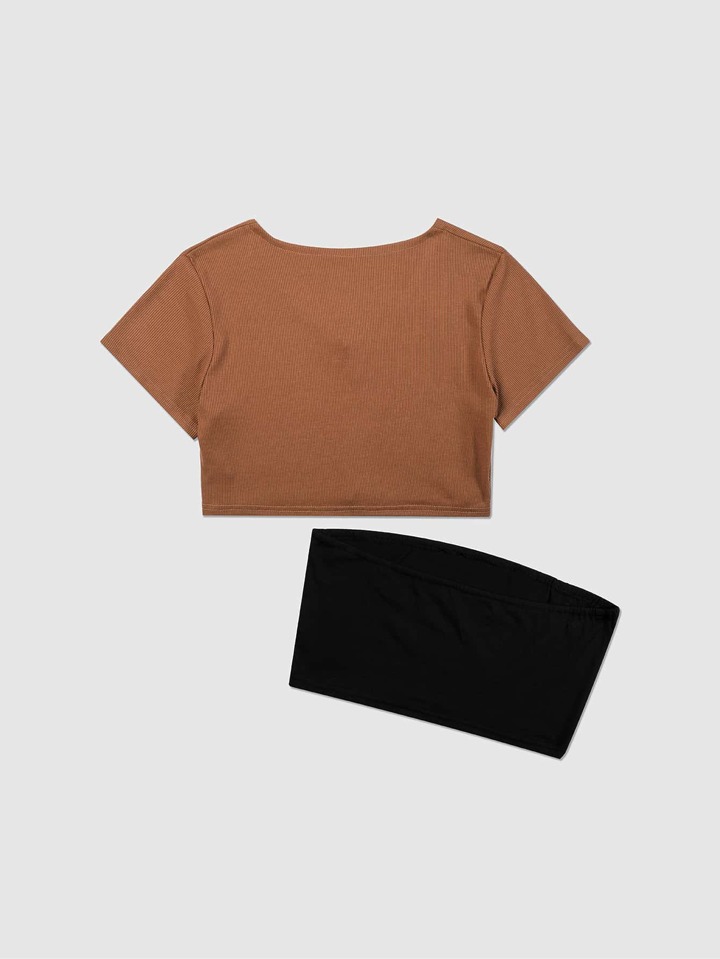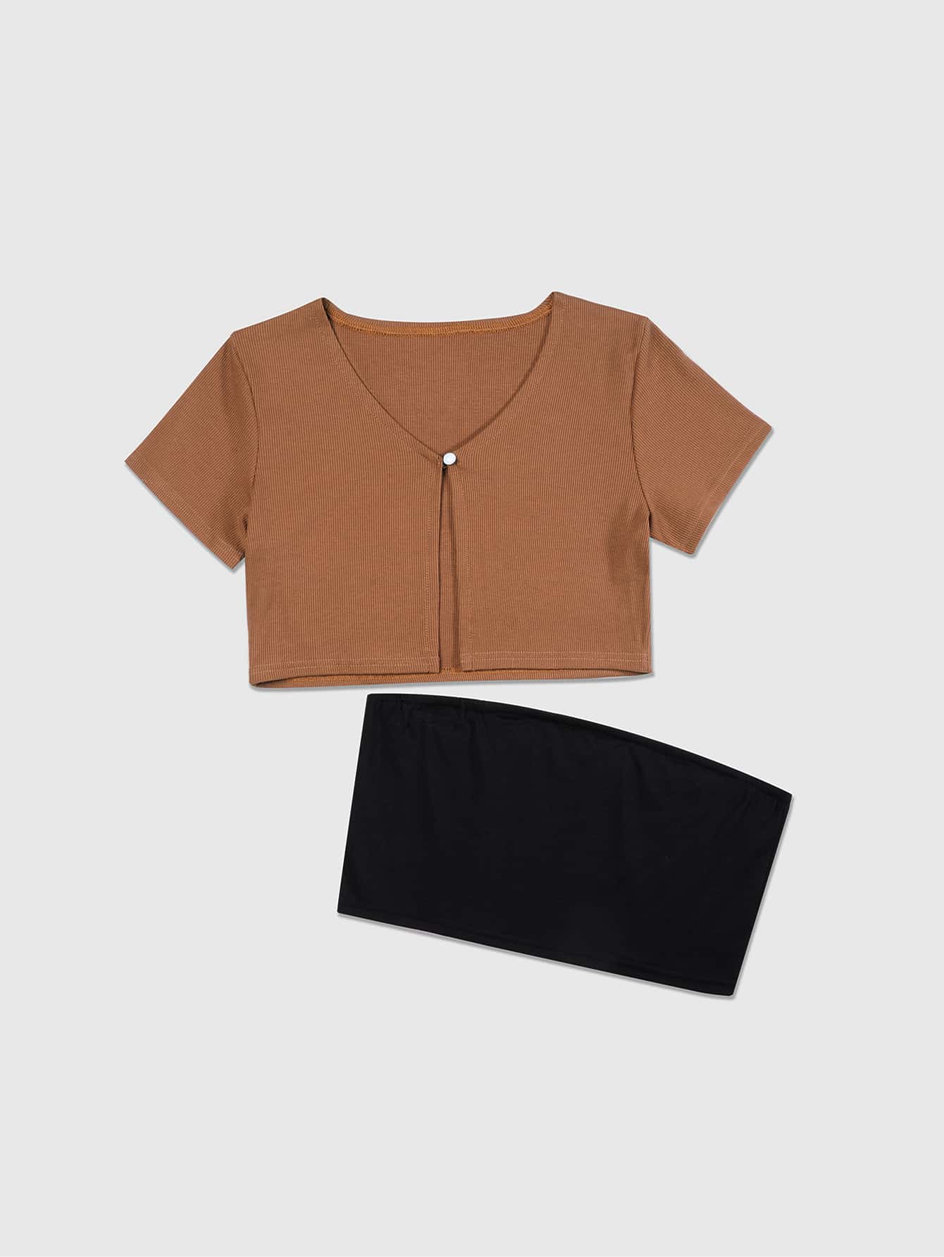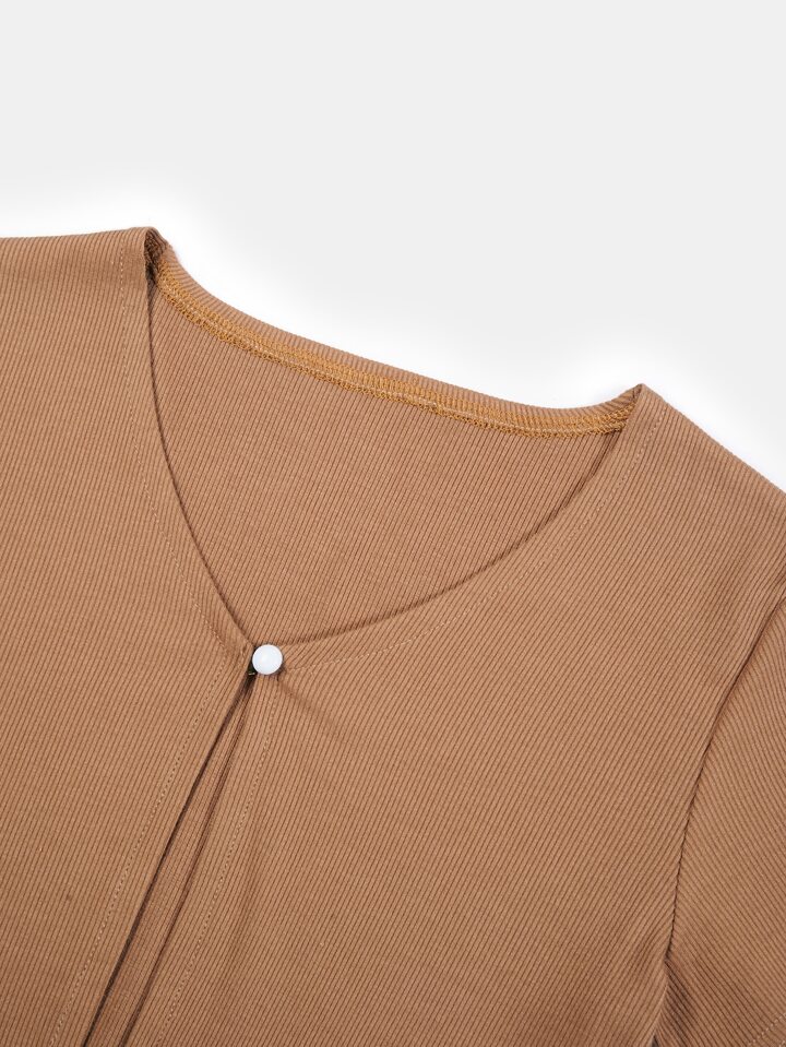 طقم قطعتين الزر محبوك الصاف كاجوال