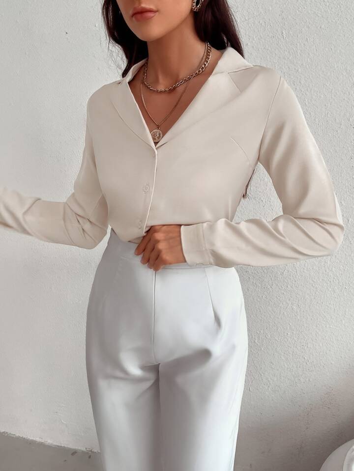 قميص أنيق أمامي بمقدمة مصمتة للنساء في أوقات العمل غير الرسمية