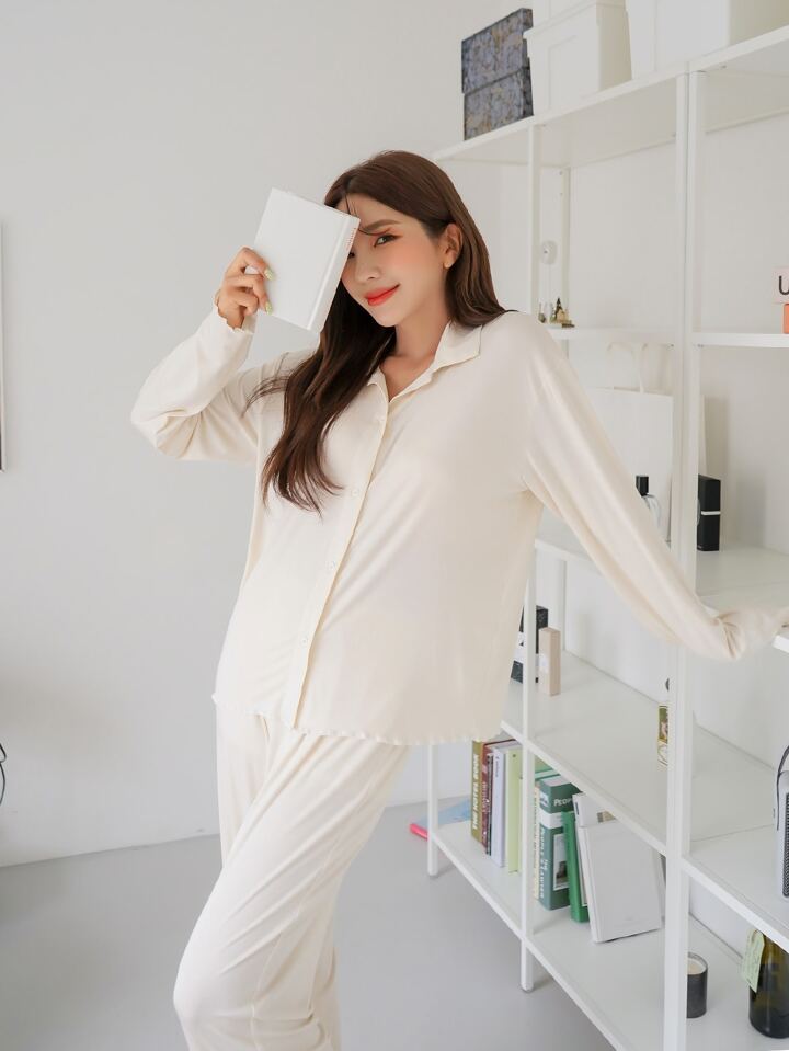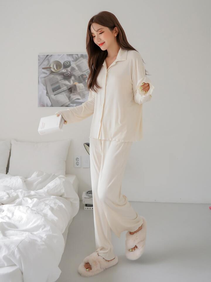 بيجامة مجموعة ملابس منزلية بأزرار أمامية