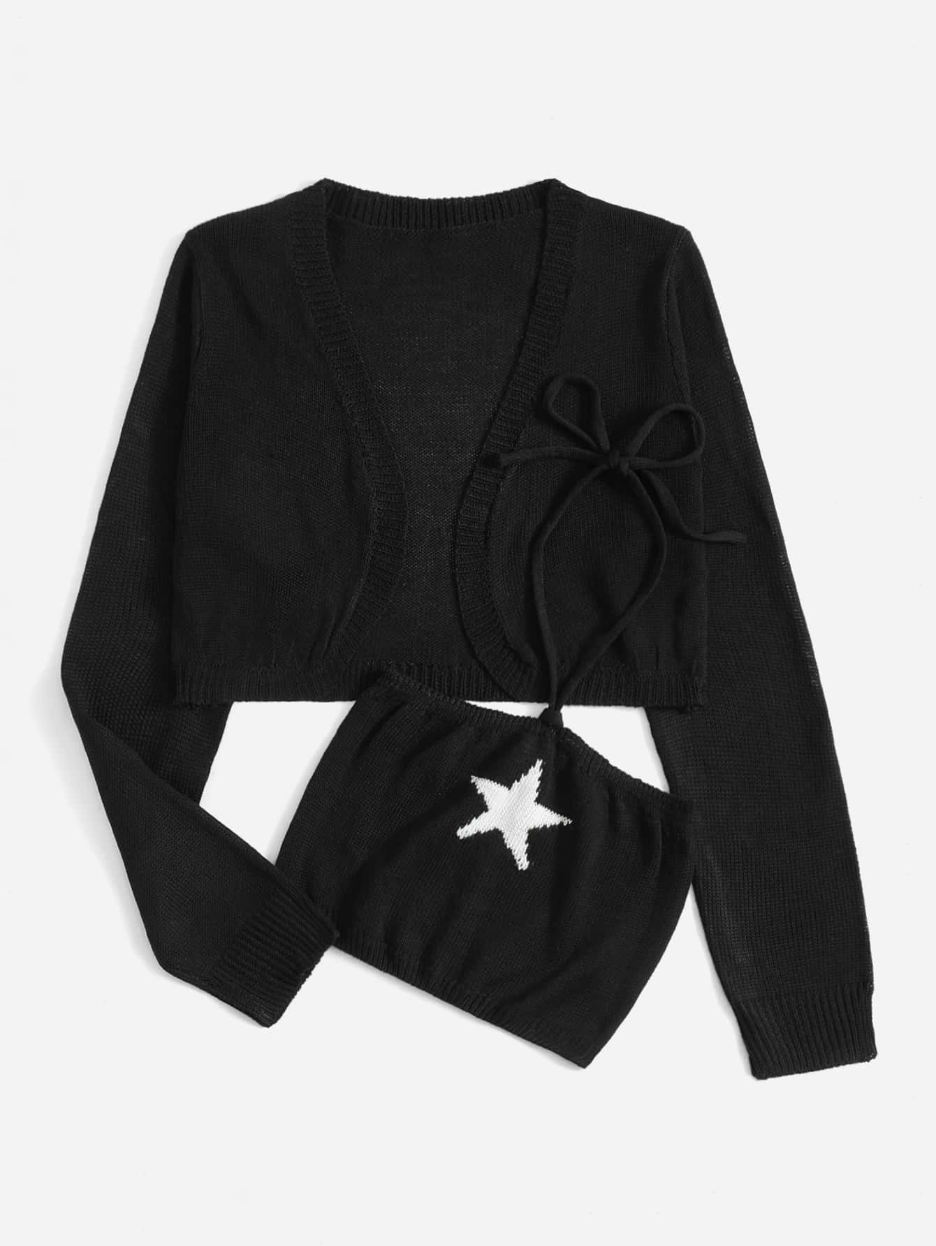 موحدة اللون كارديجان و نمط النجوم رسن لباس علوي محبوك