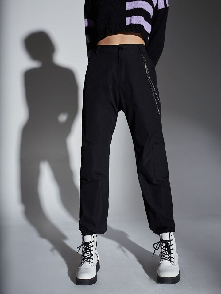 بنطلون كاجو بجيوب موحدة اللون مع سلسلة