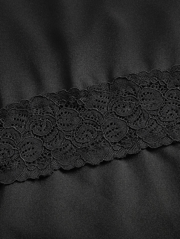 فستان موحدة اللون دانتيل متباين اللون كتف مكشوف