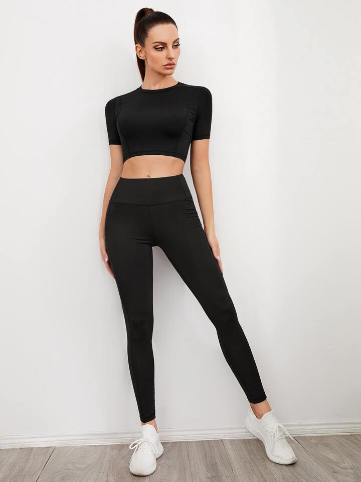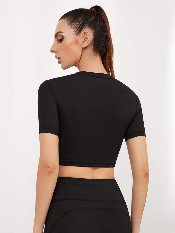 تي شيرت رياضي قصير مع جيب هاتف بلون موحد
