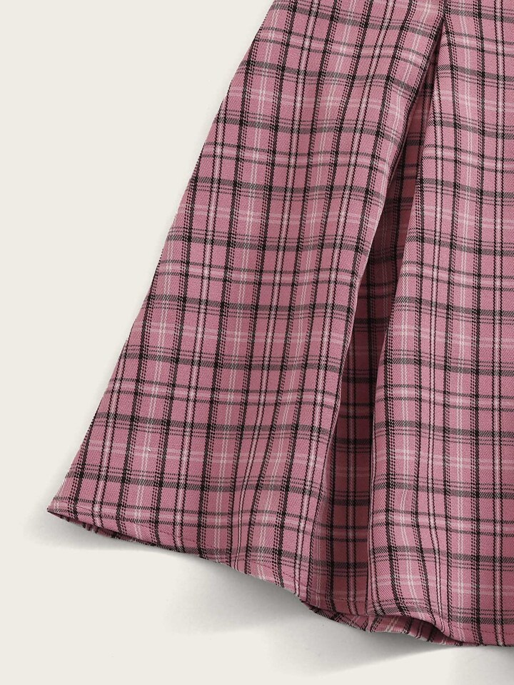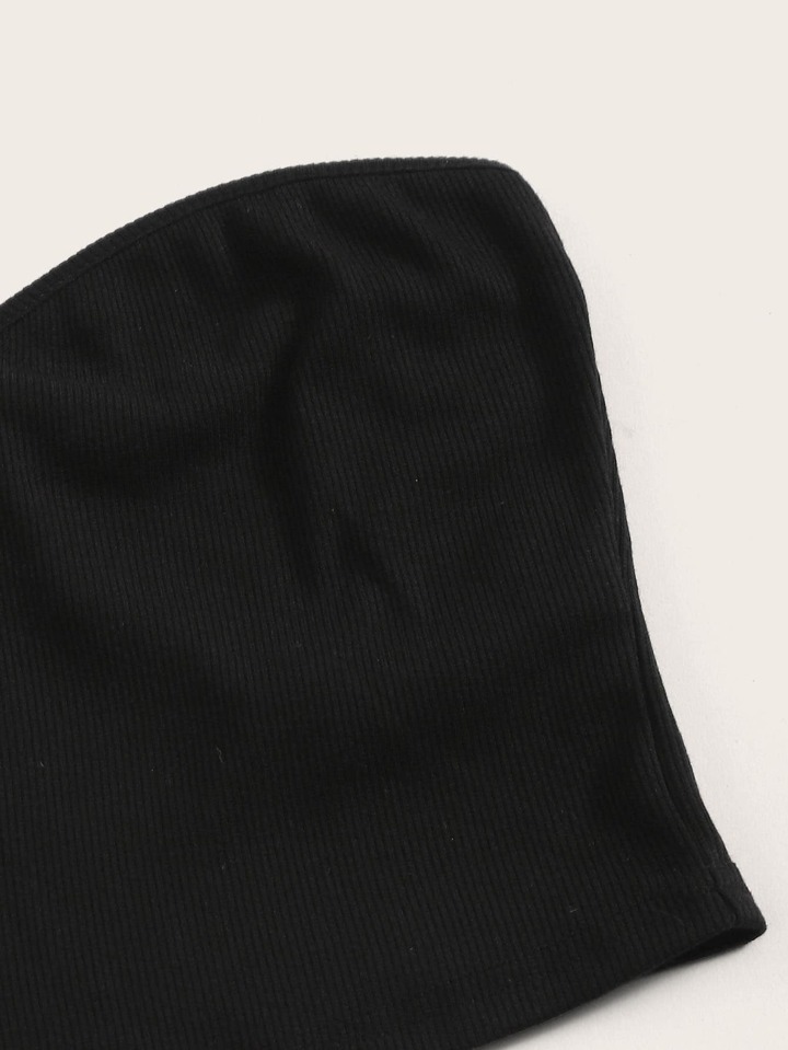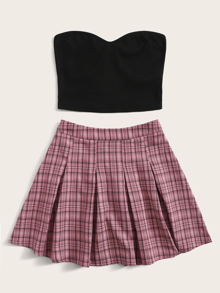 طقم تنورة مثني مربع النقش مع لباس علوي بدون حمالات نمط المحاصيل وبلون موحد