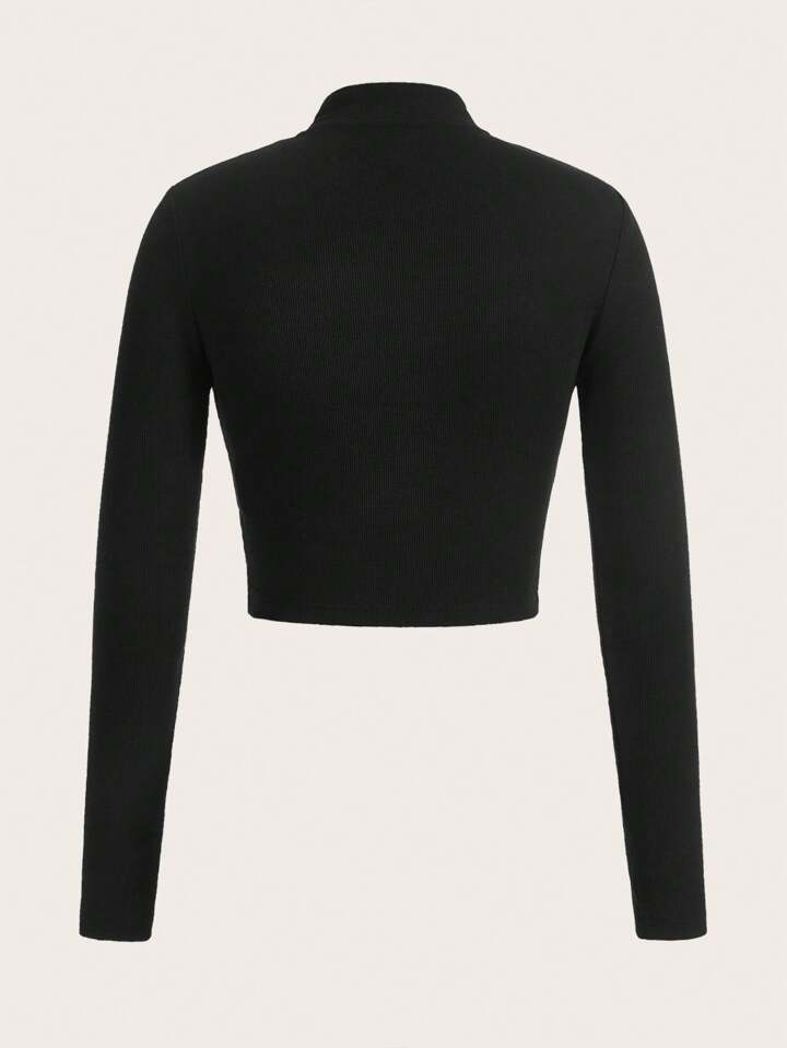 تي شيرت قصير موحدة اللون مقصوص امامي
