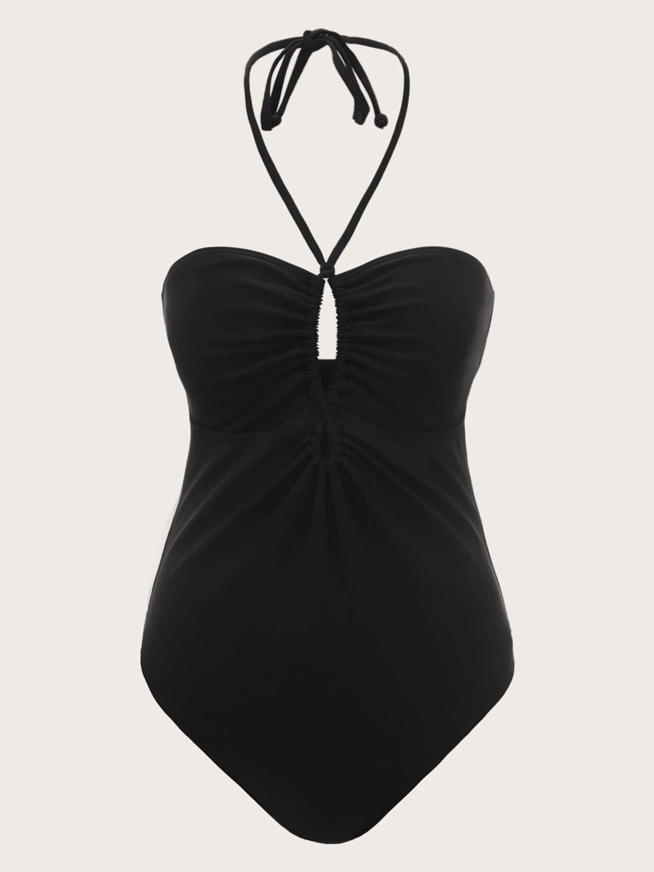 ملابس سباحة قطعة واحدة موحدة اللون رباط رسن