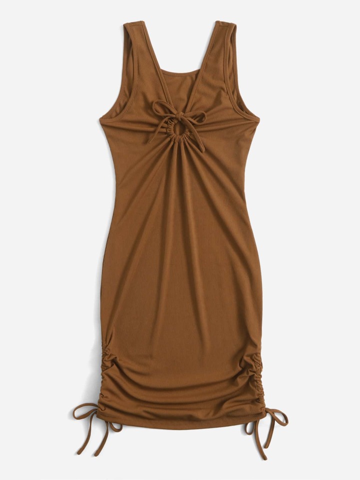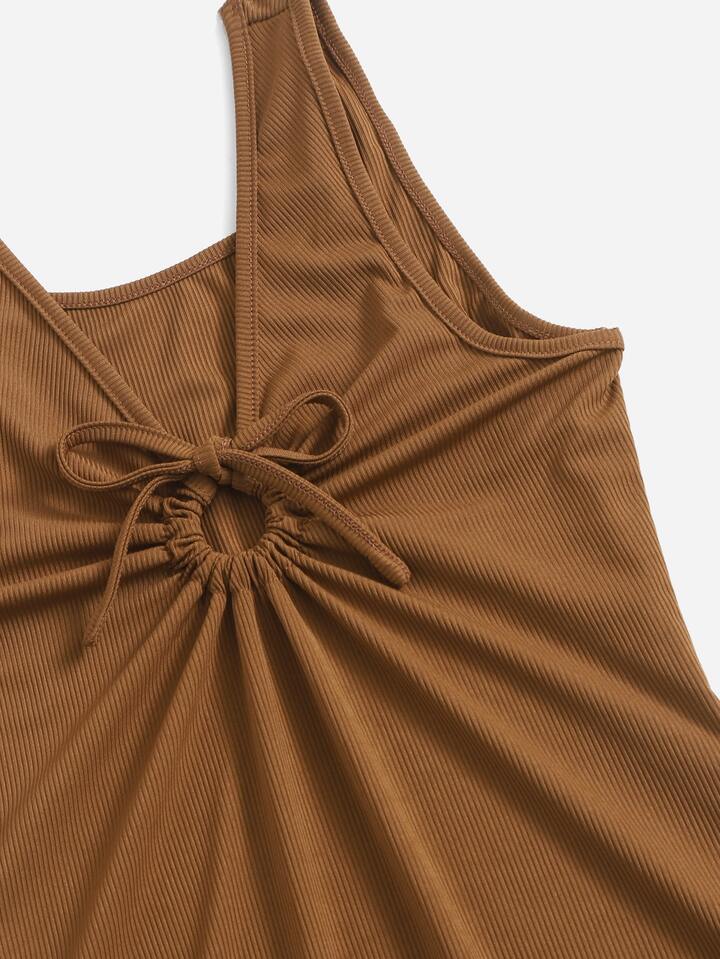 فستان الرباط الثنية محبوك الصاف كاجوال