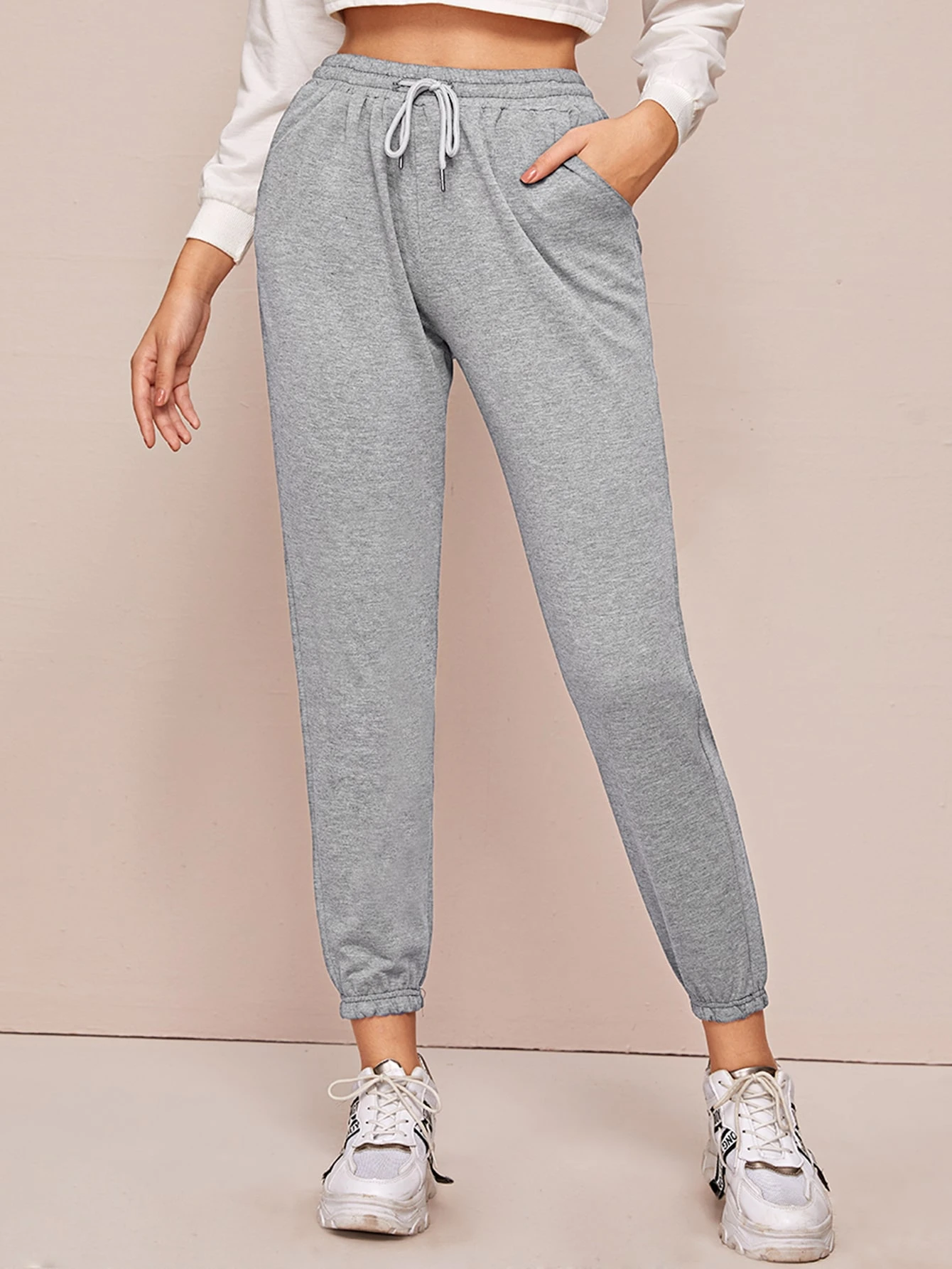 سروال رياضي نمط المحاصيل وبرباط امامي بلون موحد