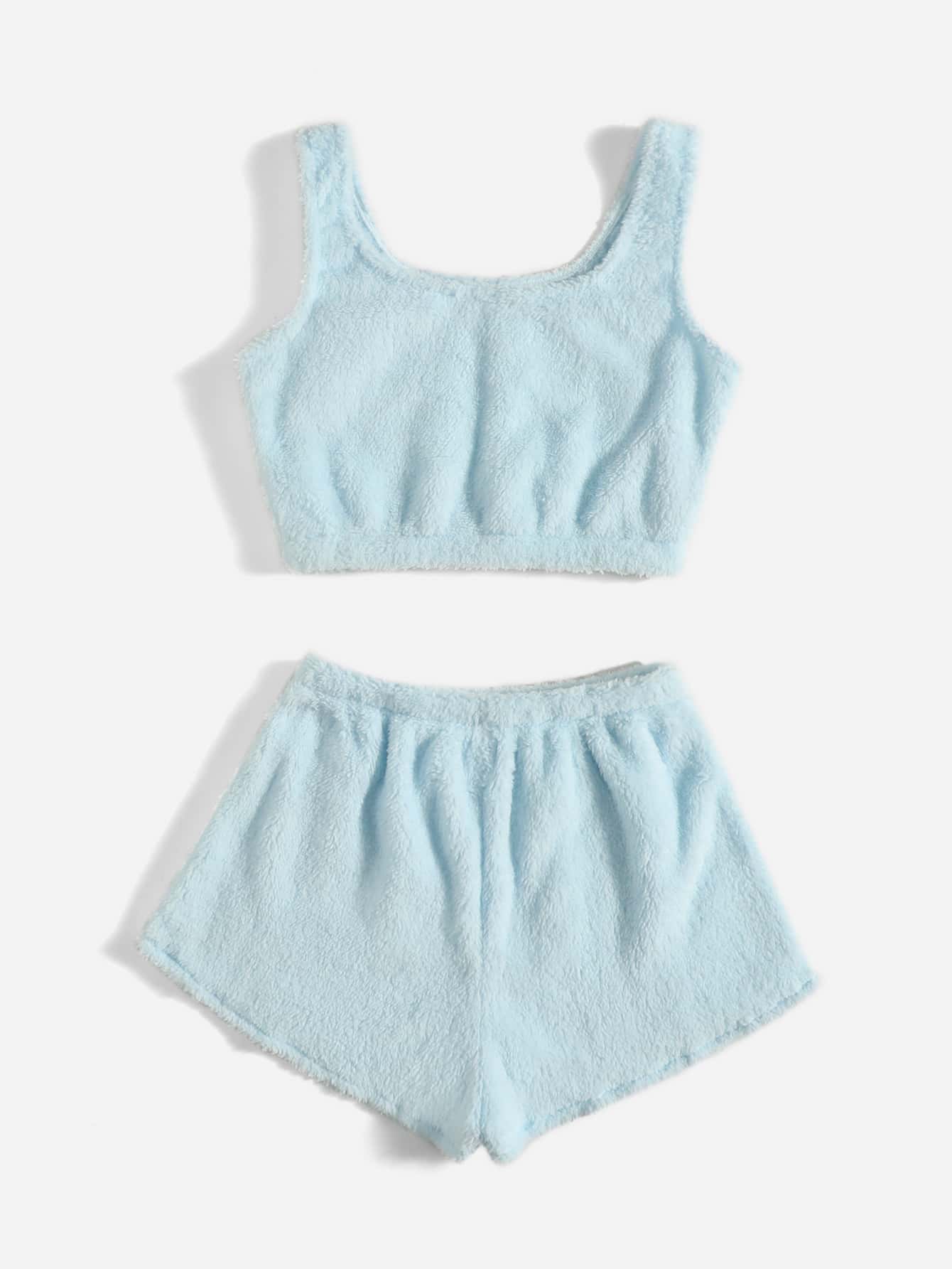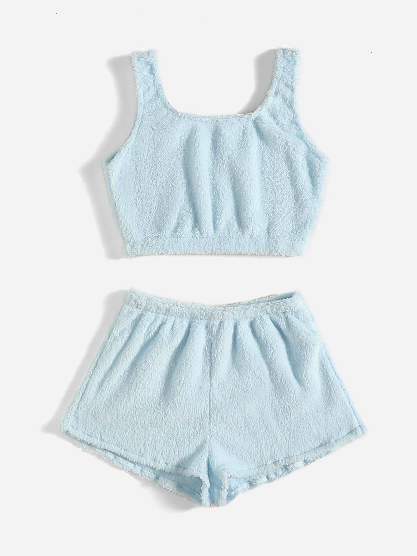 موحدة اللون فانيلا لباس علوي تانك مع بنطلون قصير
