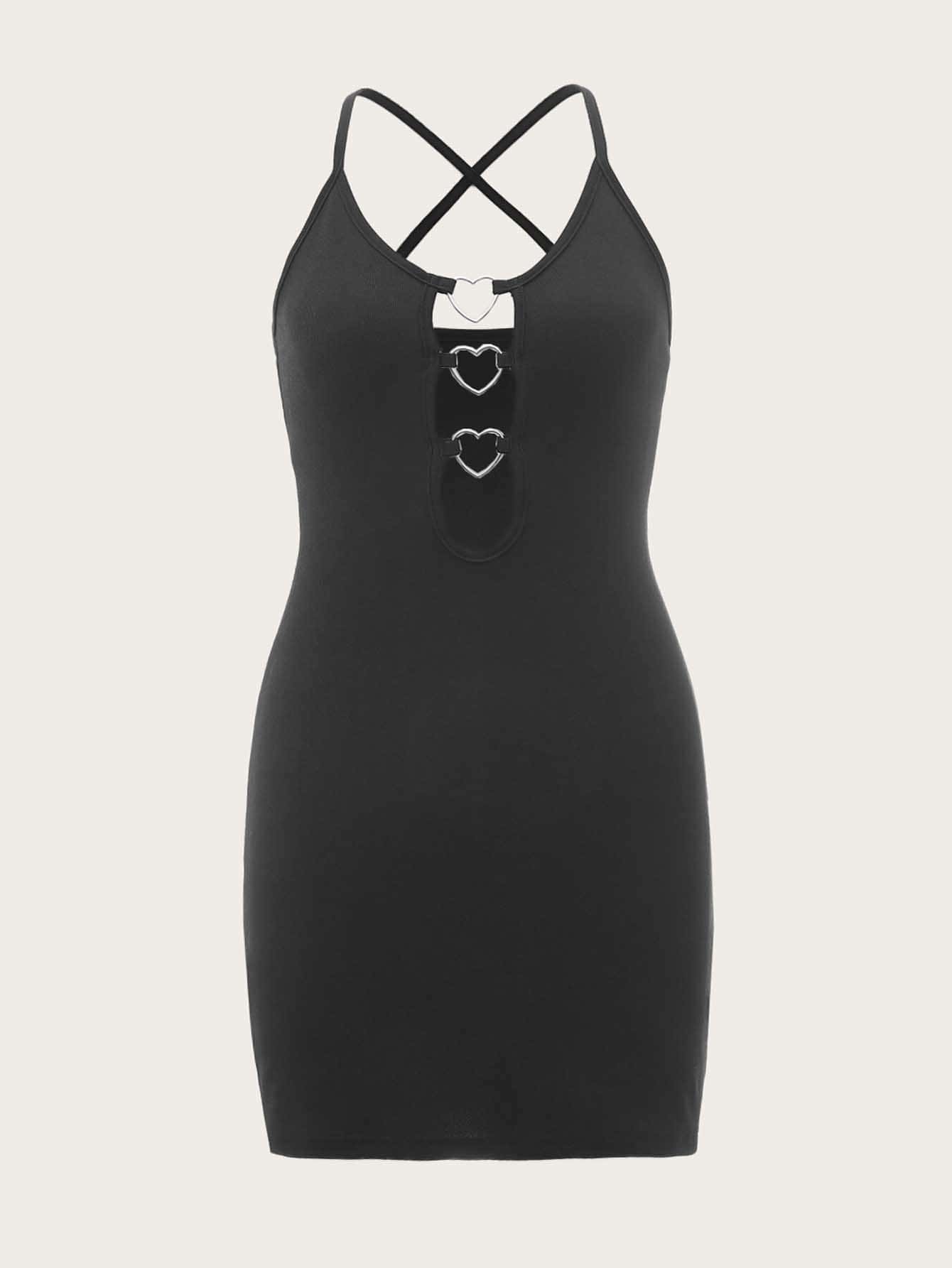 فستان كامي موحدة اللون خاتم القلب متصل أشرطة متقاطعة