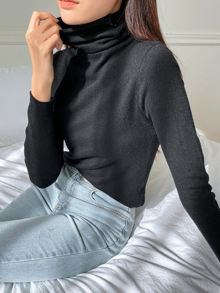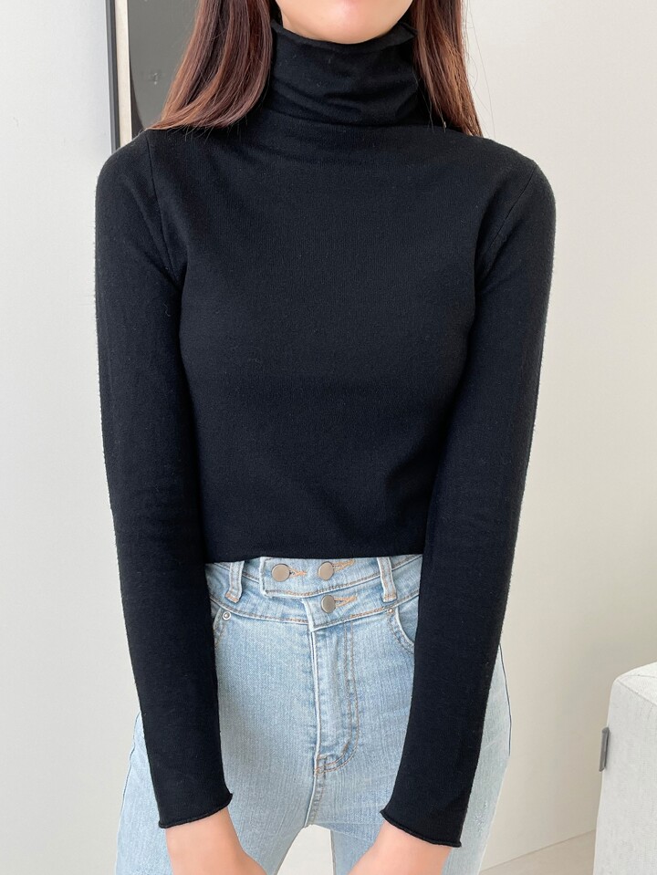 كنزة صوف موحدة اللون عنق عالي