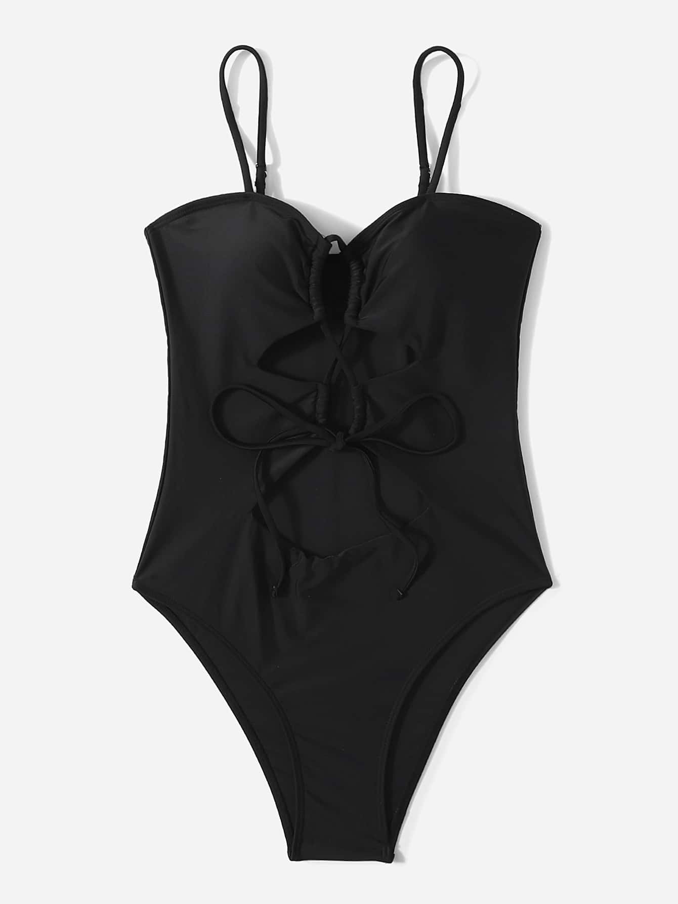 ملابس سباحة قطعة واحدة موحدة اللون رباط قص مجوف