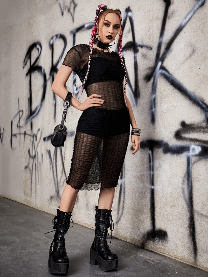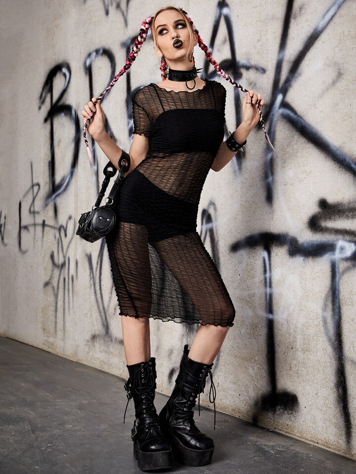 فستان موحدة اللون مقلم نمط نبات الخس شبكة طقم ملابس داخلية