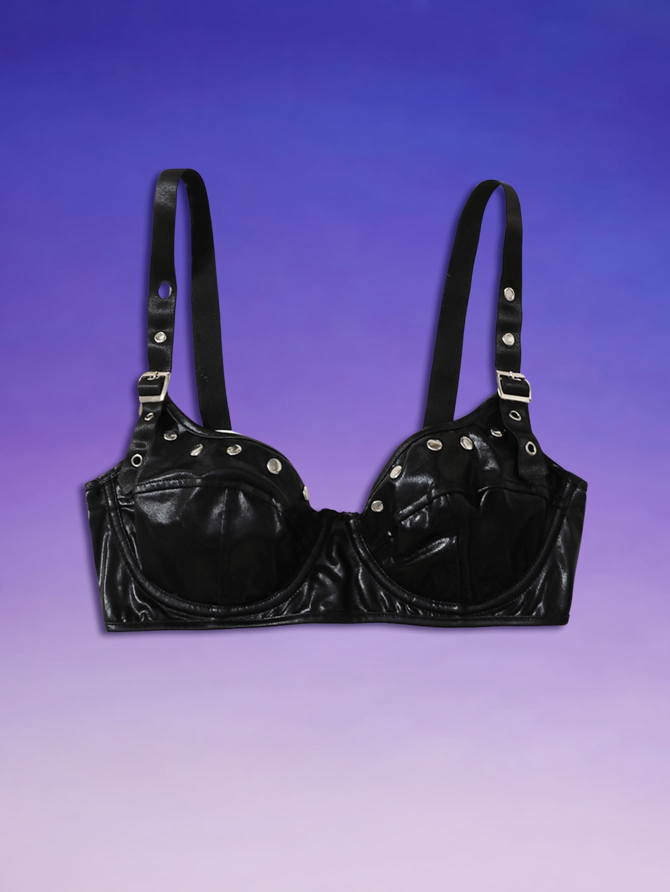 حمالة صدر موحدة اللون جلد صناعي مرصعة