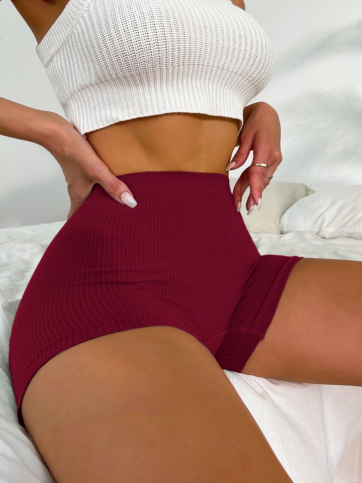 سروال داخلي موحدة اللون محبوك مضلع