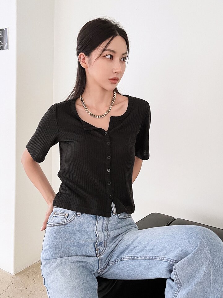 قميص محبوك بنسيج مضلع قصير للصيف، قمصان بريبي
