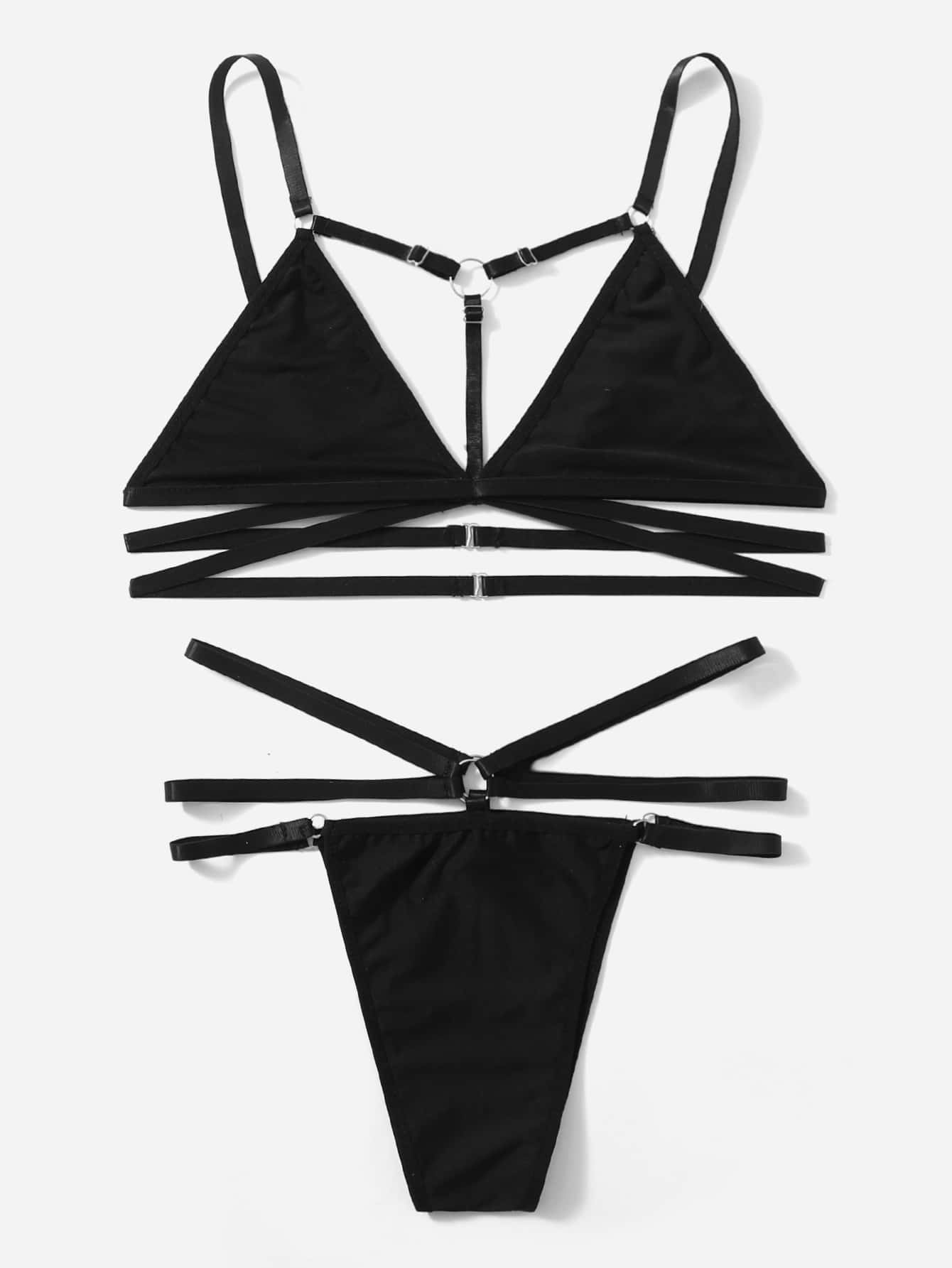 خاتم بلون موحد متصل قص مجوف طقم ملابس داخلية