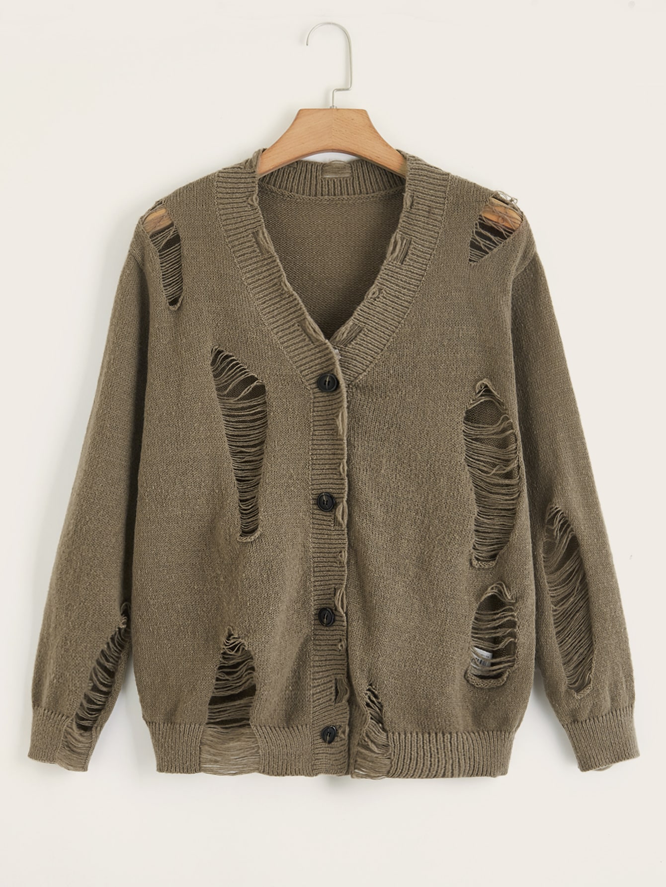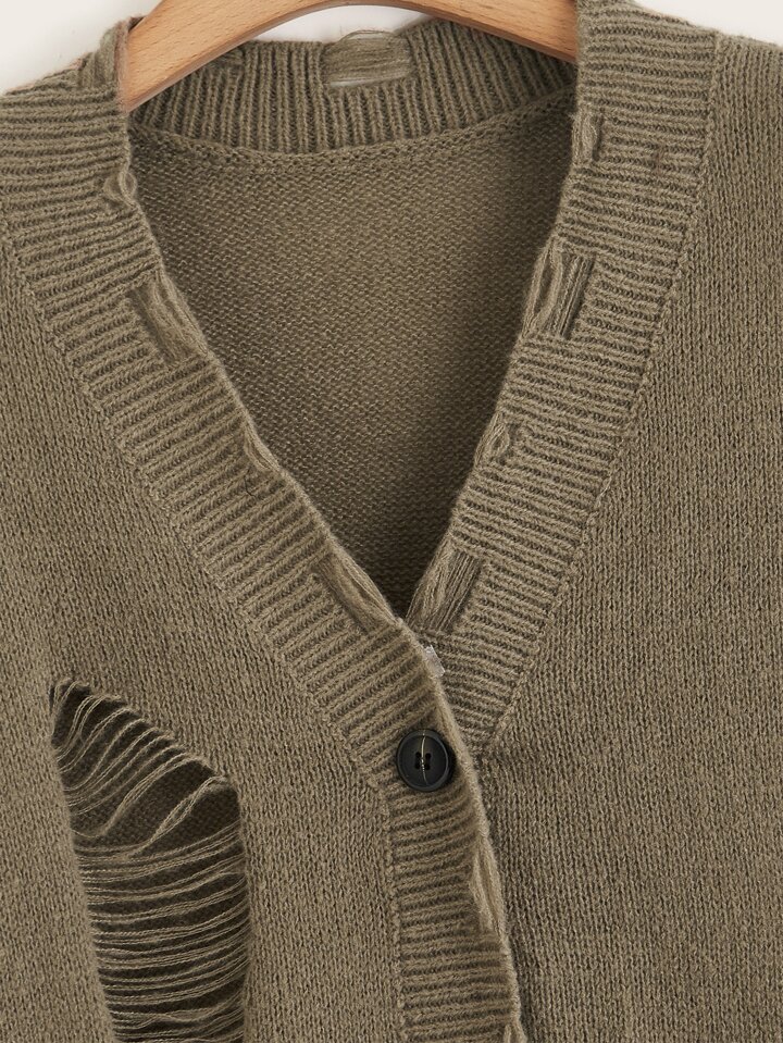كارديجان موحدة اللون ممزق أزرار أمامية