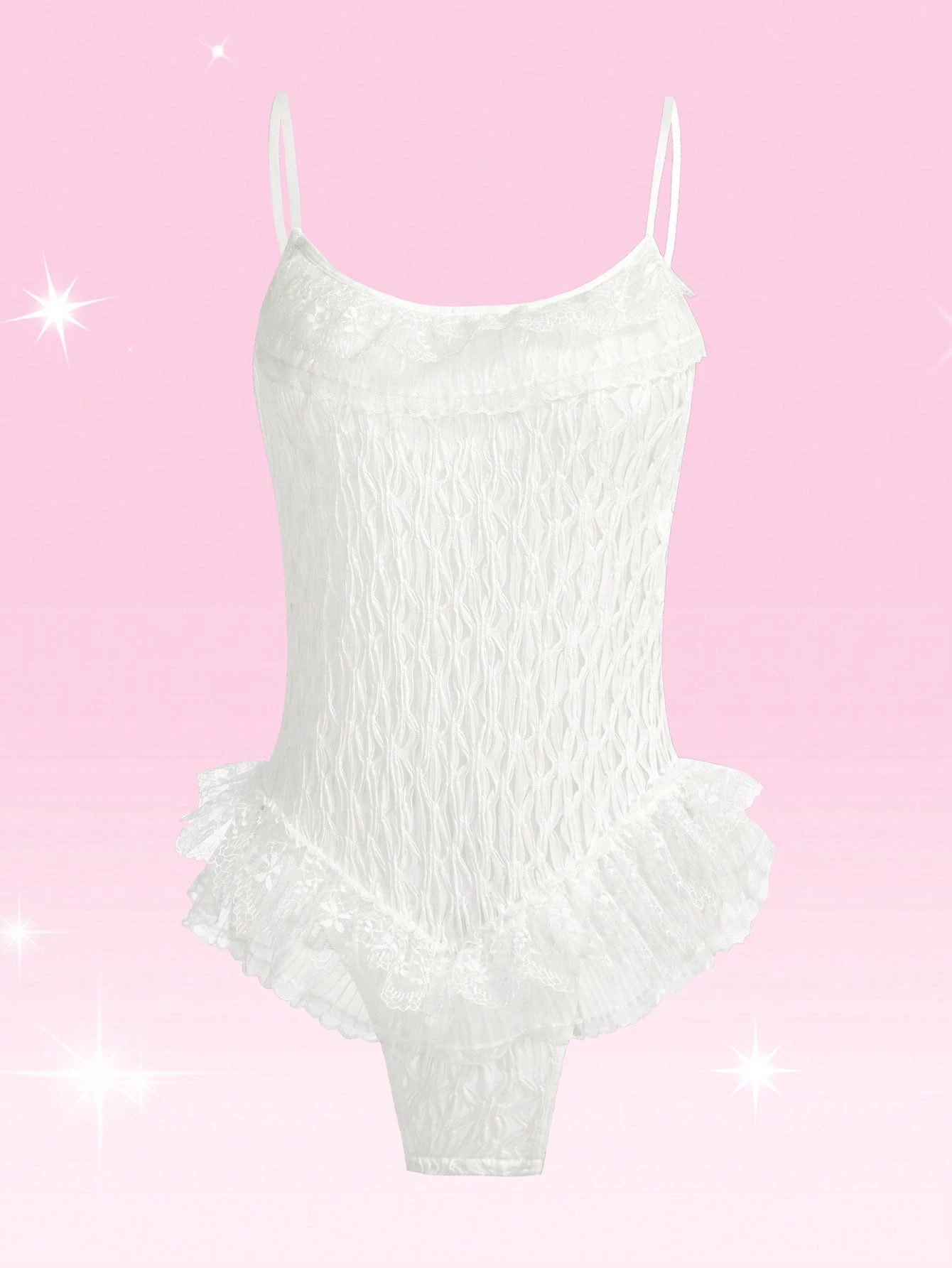 بدسويت تيدي كامي موحدة اللون حافة مكشكشة
