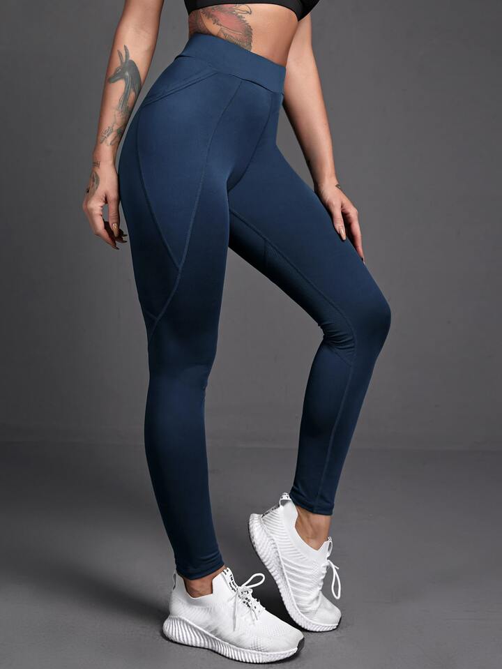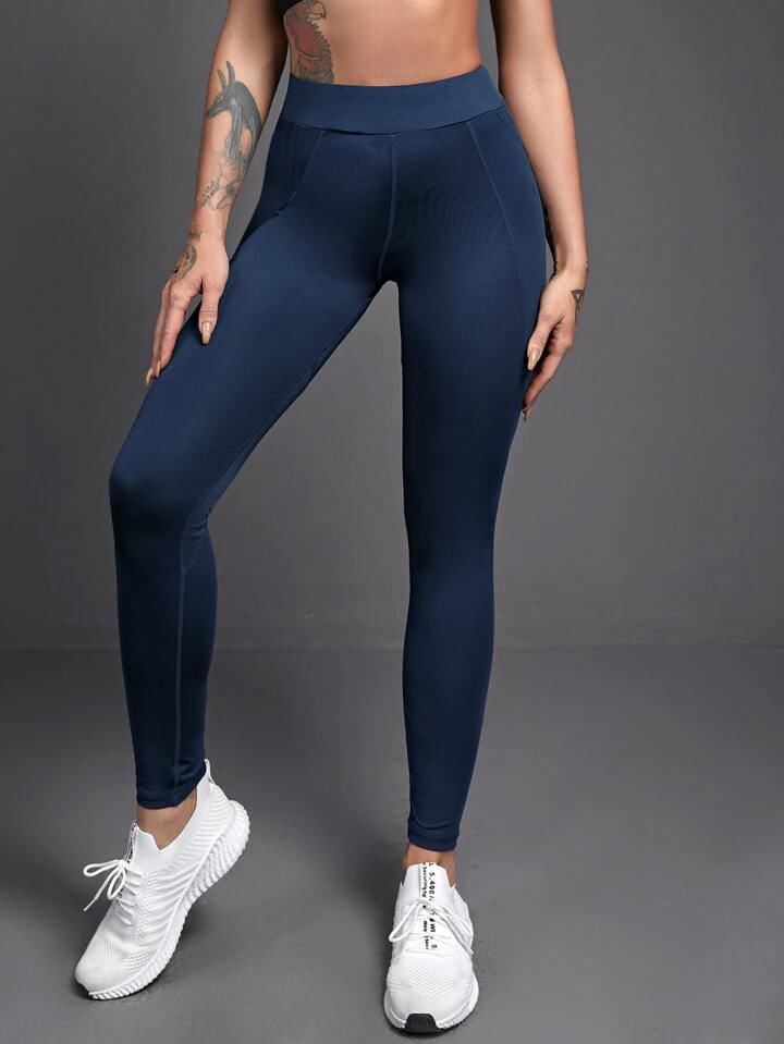 طماق رياضي بلون موحد مع جيب هاتف