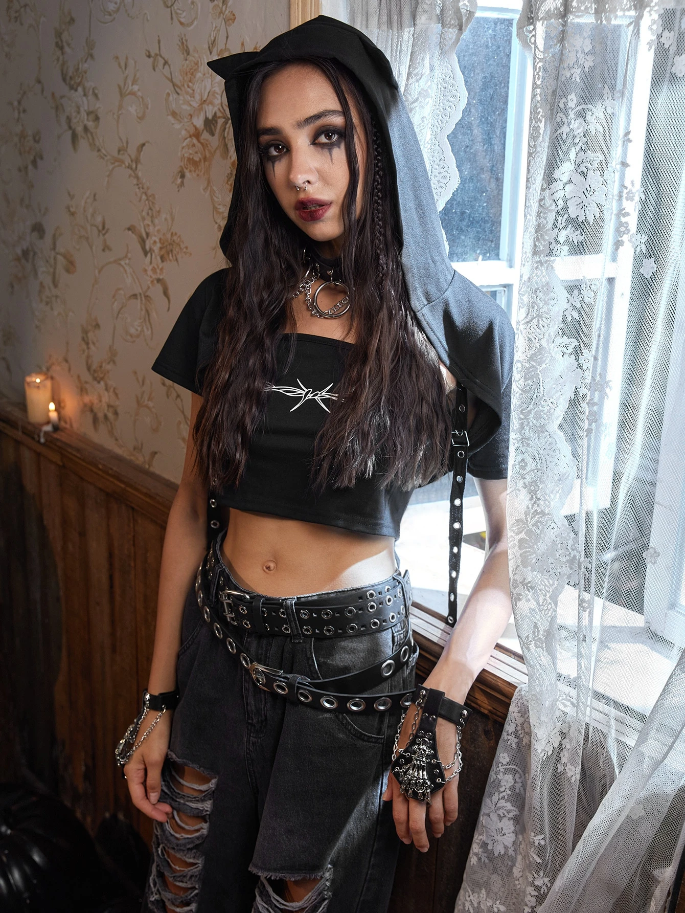 لباس علوي موحدة اللون قصير سوبر قبعة بدون لباس كامي