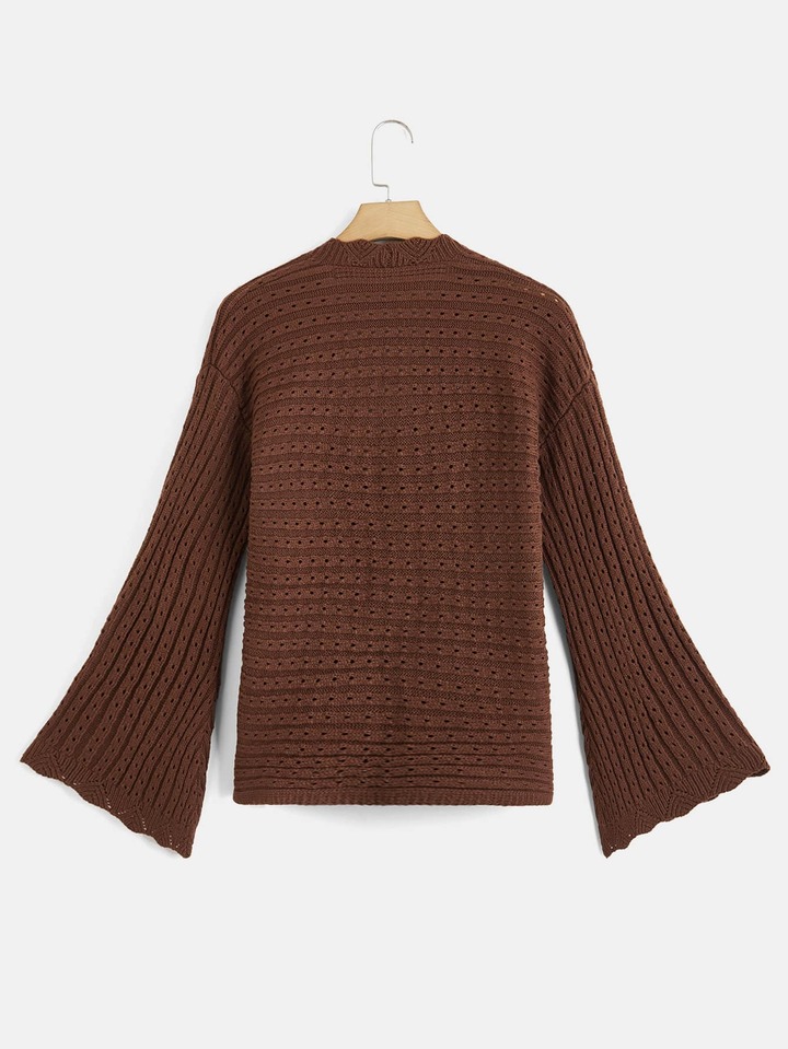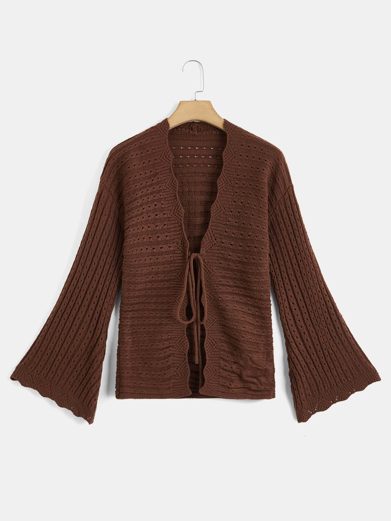 كارديجان موحدة اللون ربطة امامية اكمام منتفضة