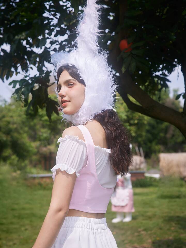 موحدة اللون لباس علوي مع مكشوف الكتف مقلم بهدب لباس علوي