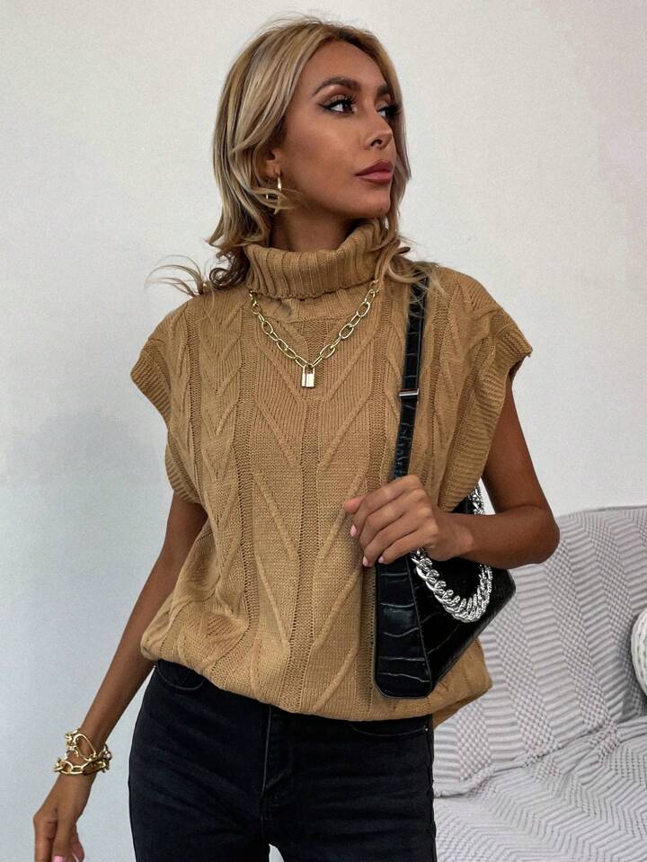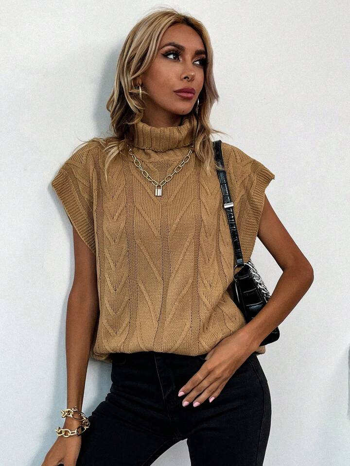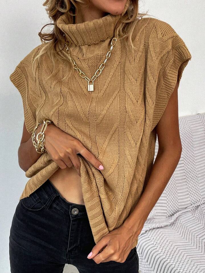 ملابس علوية محبوك موحدة اللون ياقة دائري
