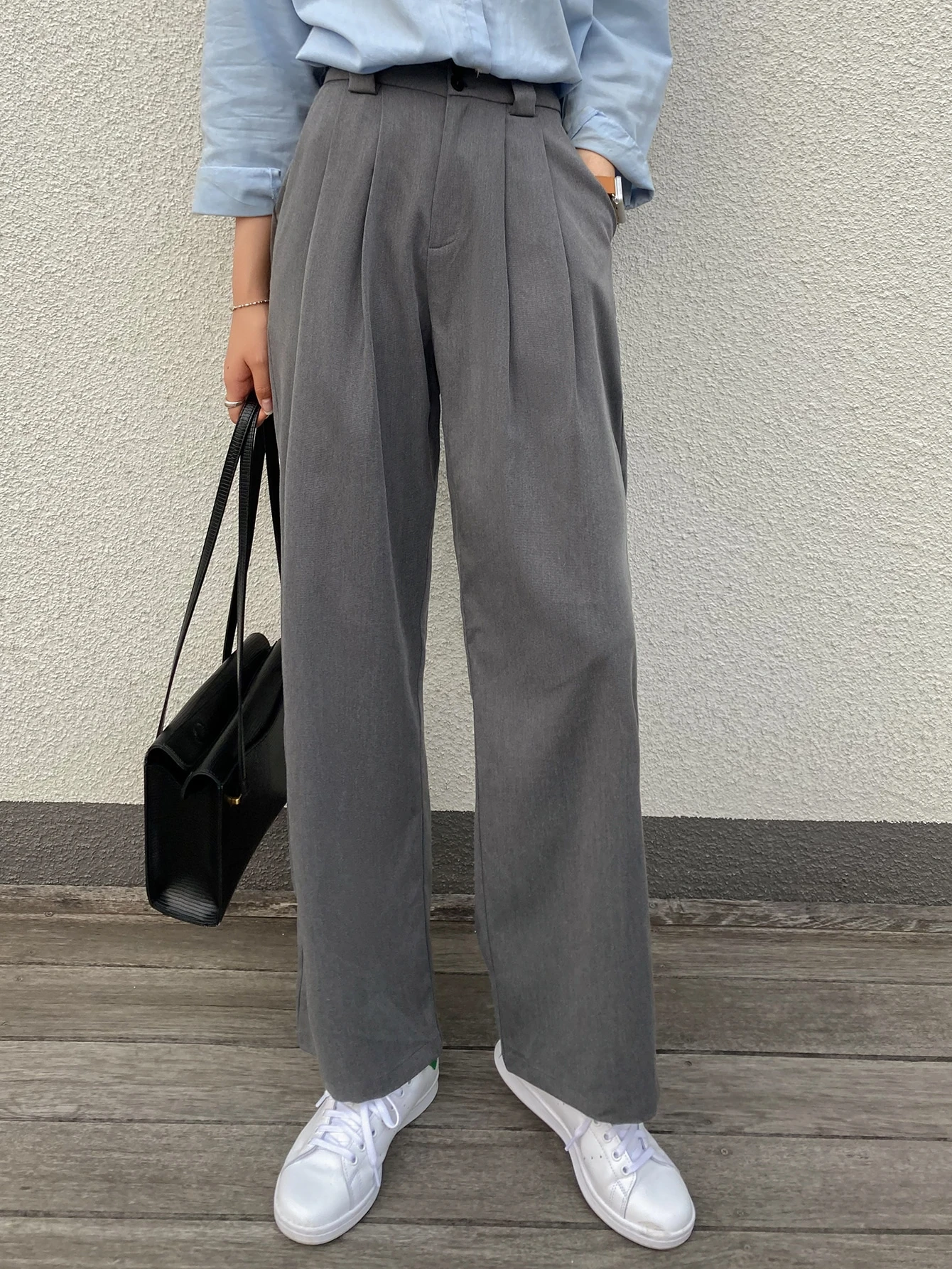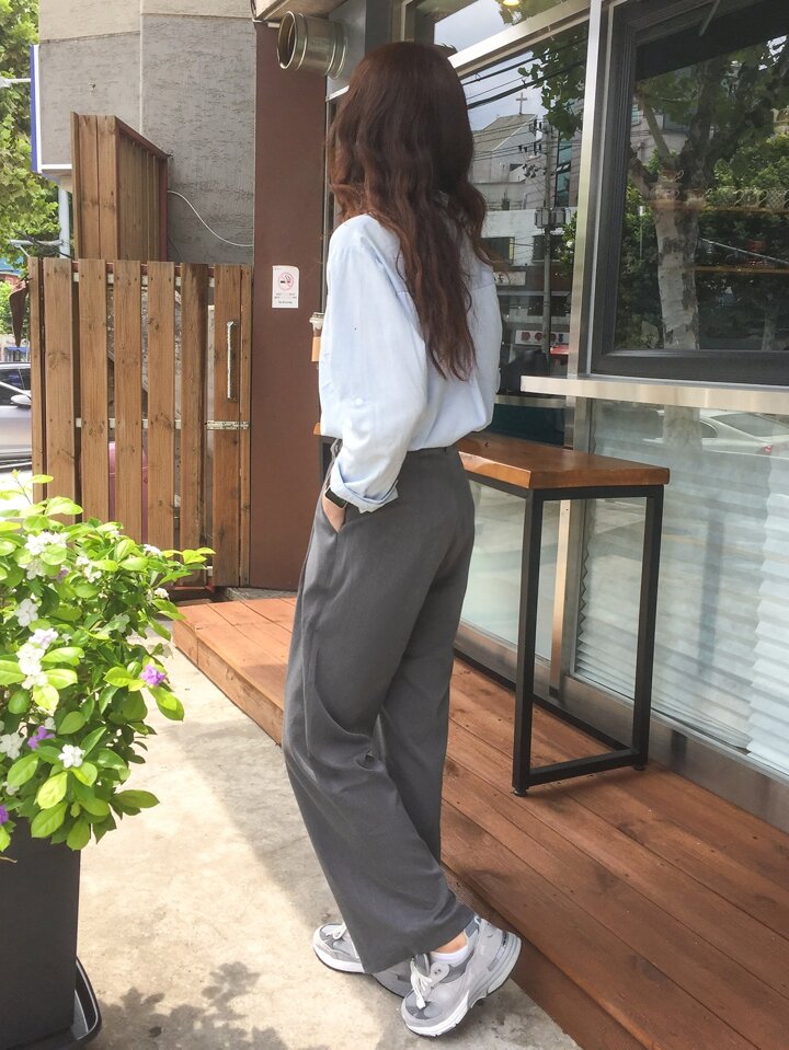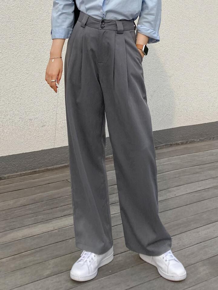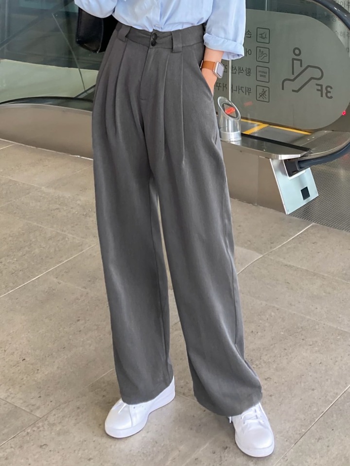 بنطلون ذو قدم واسعة وتفاصيل مطوية، بنطلون المعلم