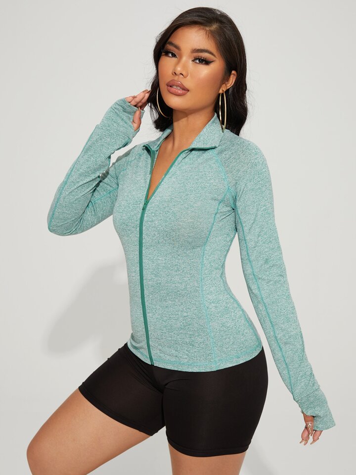 جاكيت رياضي موحدة اللون سستة اكمام راجلان