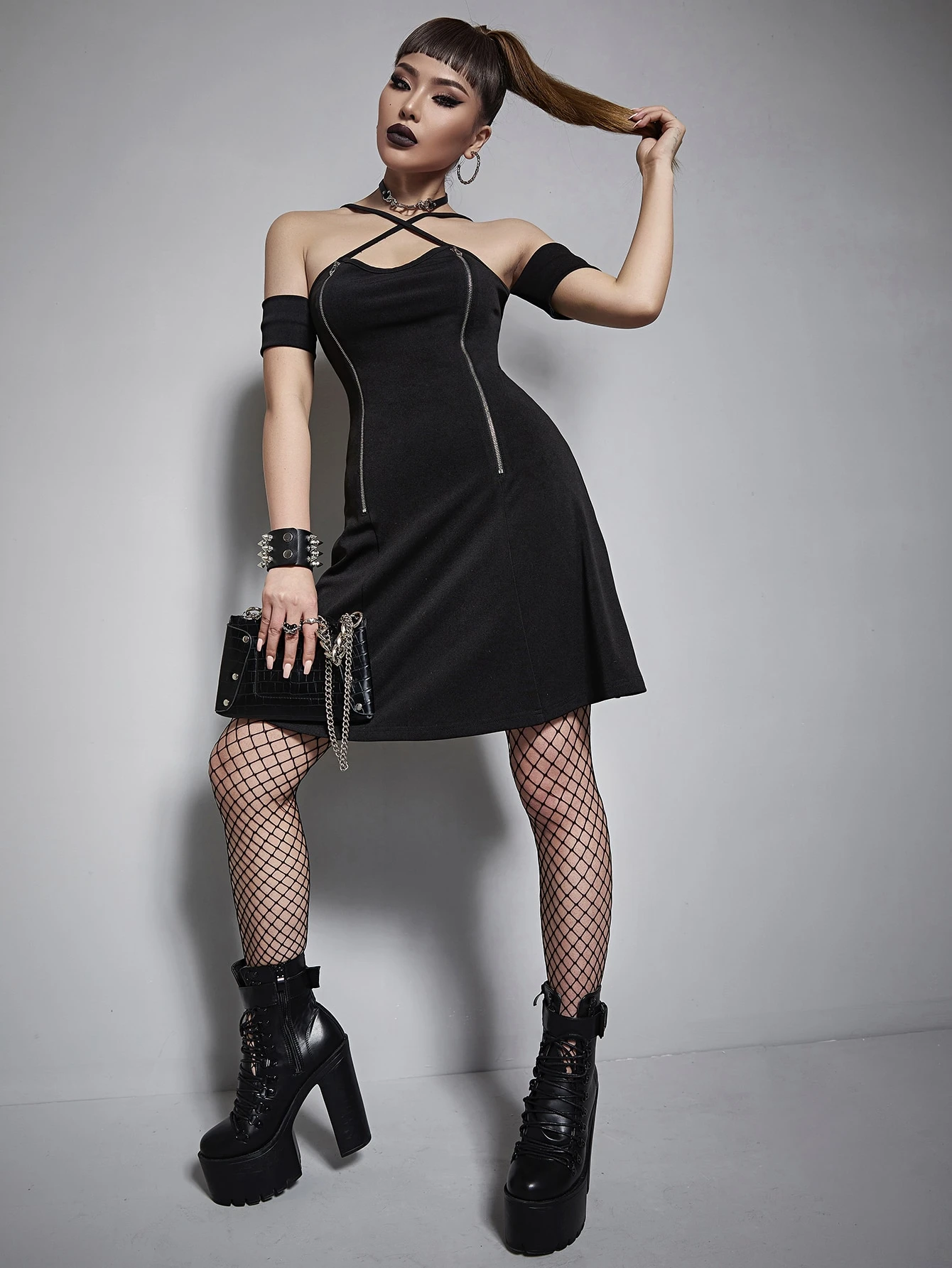 فستان بشريط A موحدة اللون سستة امامي متقاطع