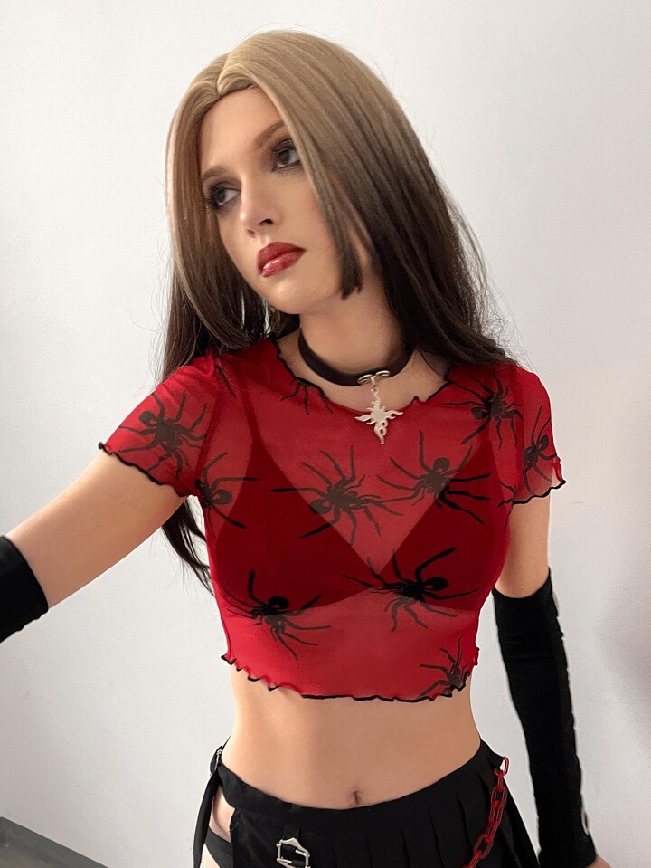 لباس علوي قصير عنكبوت طباعة مقلم نمط نبات الخس بدون حمالة صدر