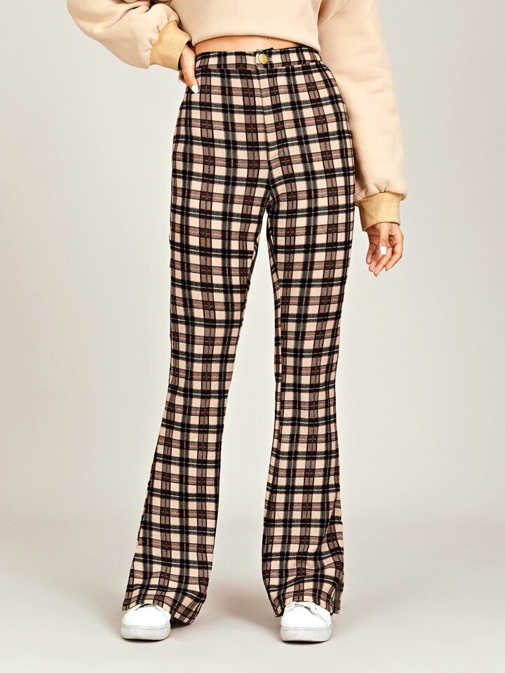 سروال بساق واسع من الاسفل صوف مقلم بحافة مشقوق