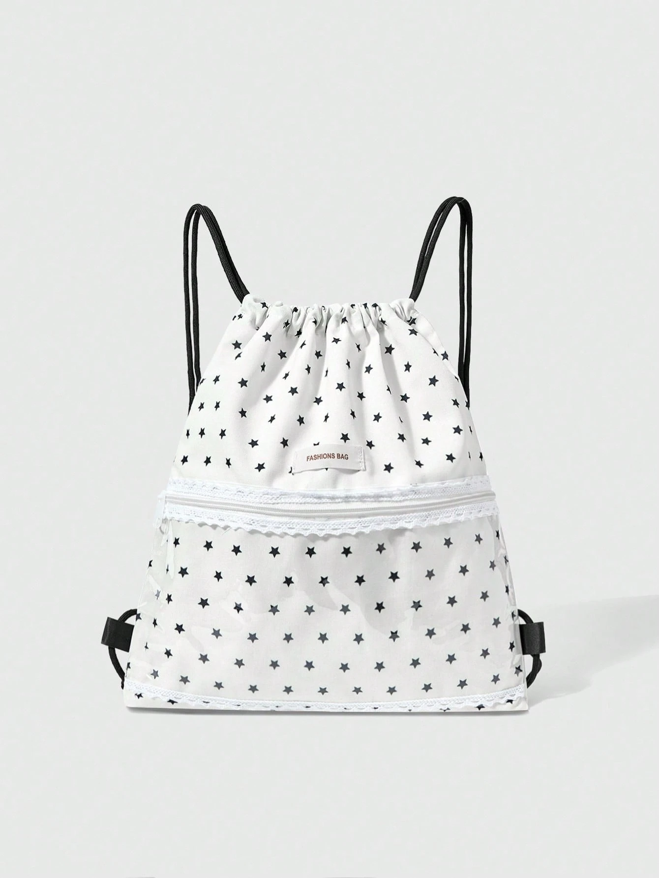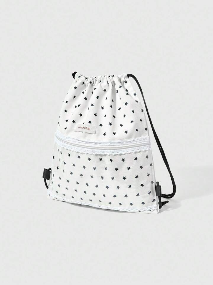 Anime حقيبة ظهر بسحاب شفاف وجيب كبير السعة متعددة الوظائف، بتصميم نجمي مع تطريز دانتيل متباين، بأسلوب أنمي جميل، مناسبة للمدرسة والتنقل والاستخدام اليومي العادي