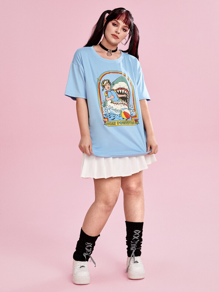 Stevenrhodes تي شيرت منخفض الاكتاف صور رسوم كارتون مقاس كبير
