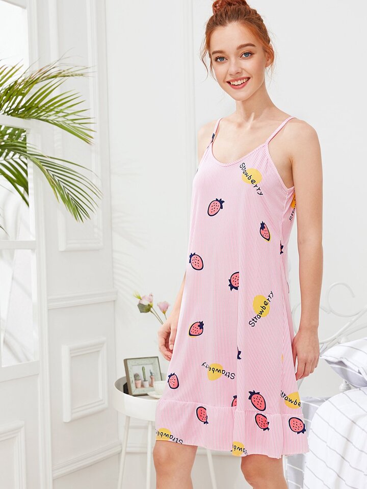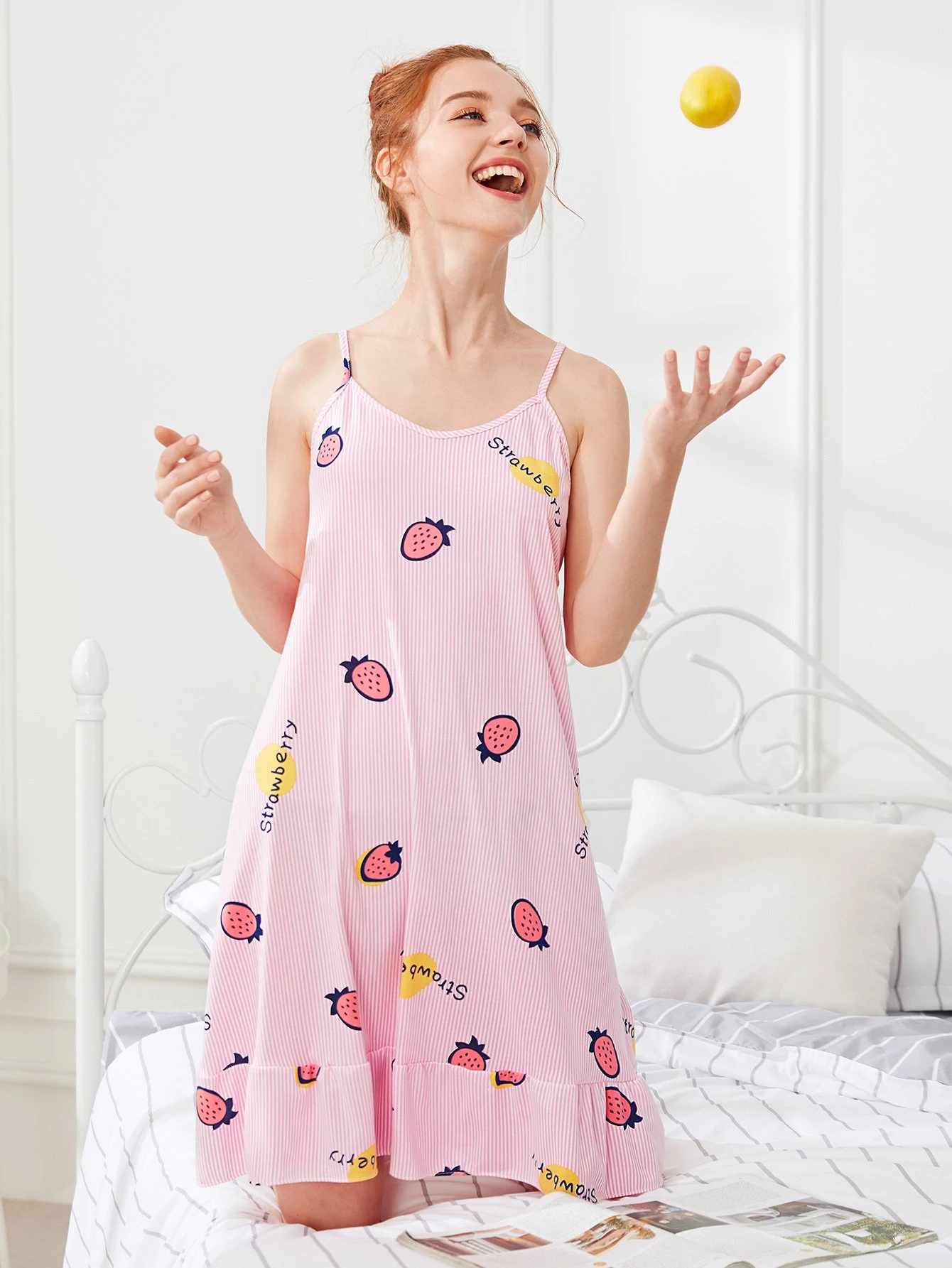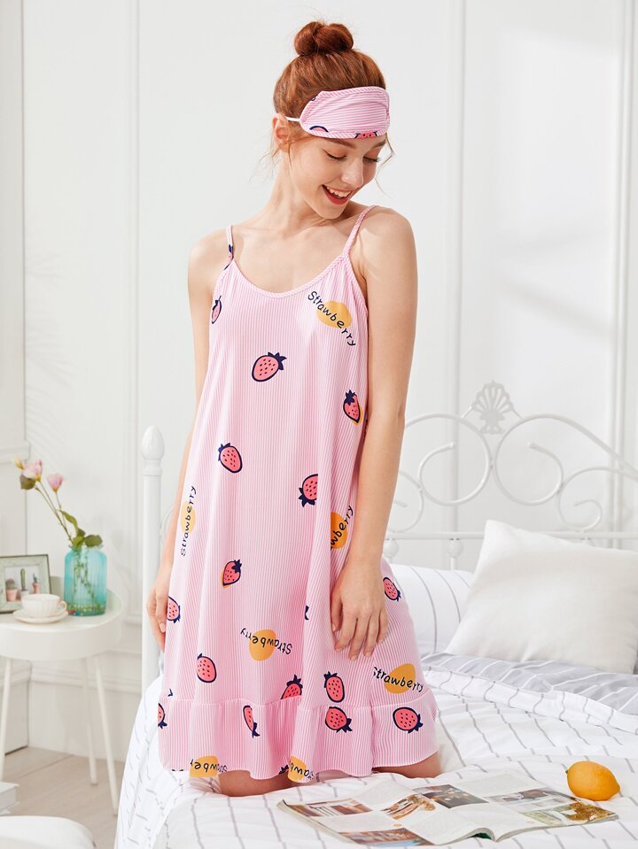 فستان بحمالات بطباعة فراولة مع قناع عين