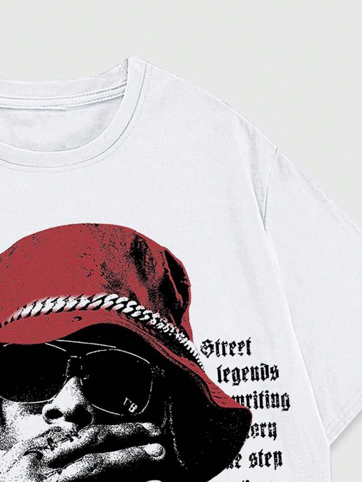 Street Life تي شيرت قصير الأكمام مطبوع للرجال قطعة واحدة، مناسب للاستخدام اليومي في فصلي الربيع والصيف
