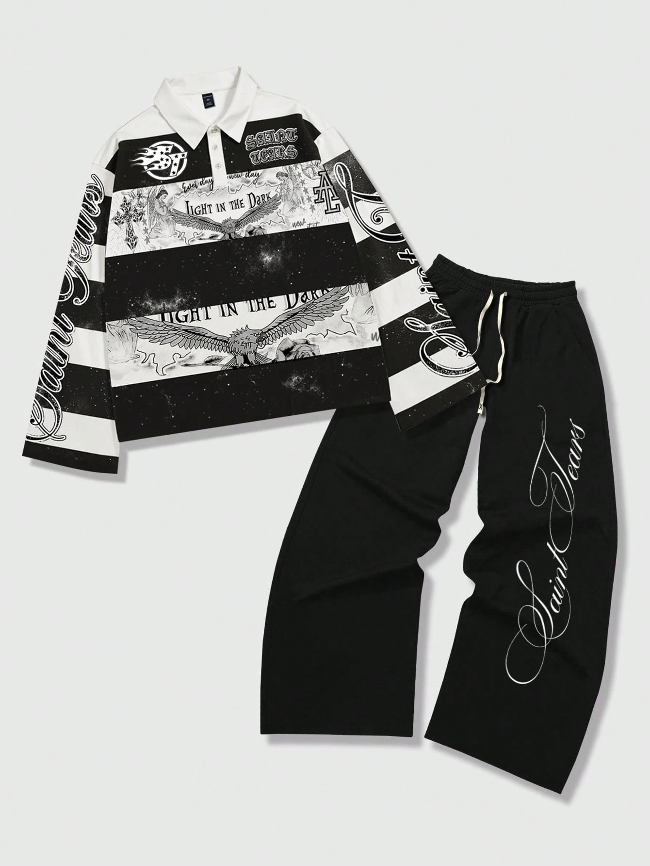 Street Life مجموعة رجالية كاجوال للشارع، قطعتان: ملابس علوية + بنطلون رياضي